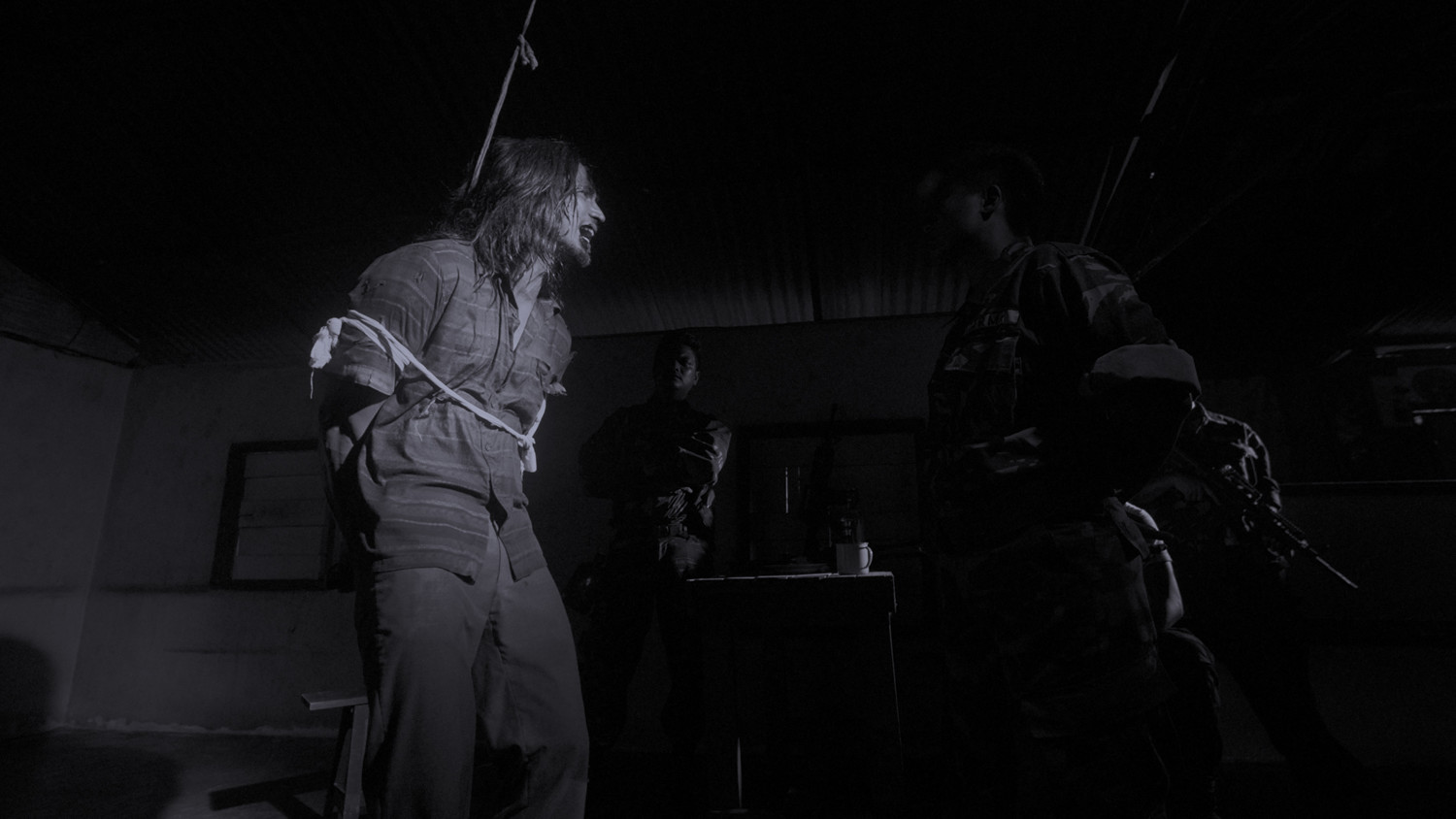 Это, с одной стороны, фирменный фильм Лава, разве что относительно короткий – 3 часа 50 минут – и совсем простой по драматургии: на одном полюсе – распоясавшаяся от безнаказанности вооруженная милиция, использующая для запугивания людей суеверия и возведшая в царьки двуликого монстра Нарцисо, на другом – поэт в поисках своей жены, открывшей клинику для бедняков в опасном районе и исчезнувшей после очередного кровавого рейда, женщина, чьи родные были казнены как «террористы», старик-мудрец;