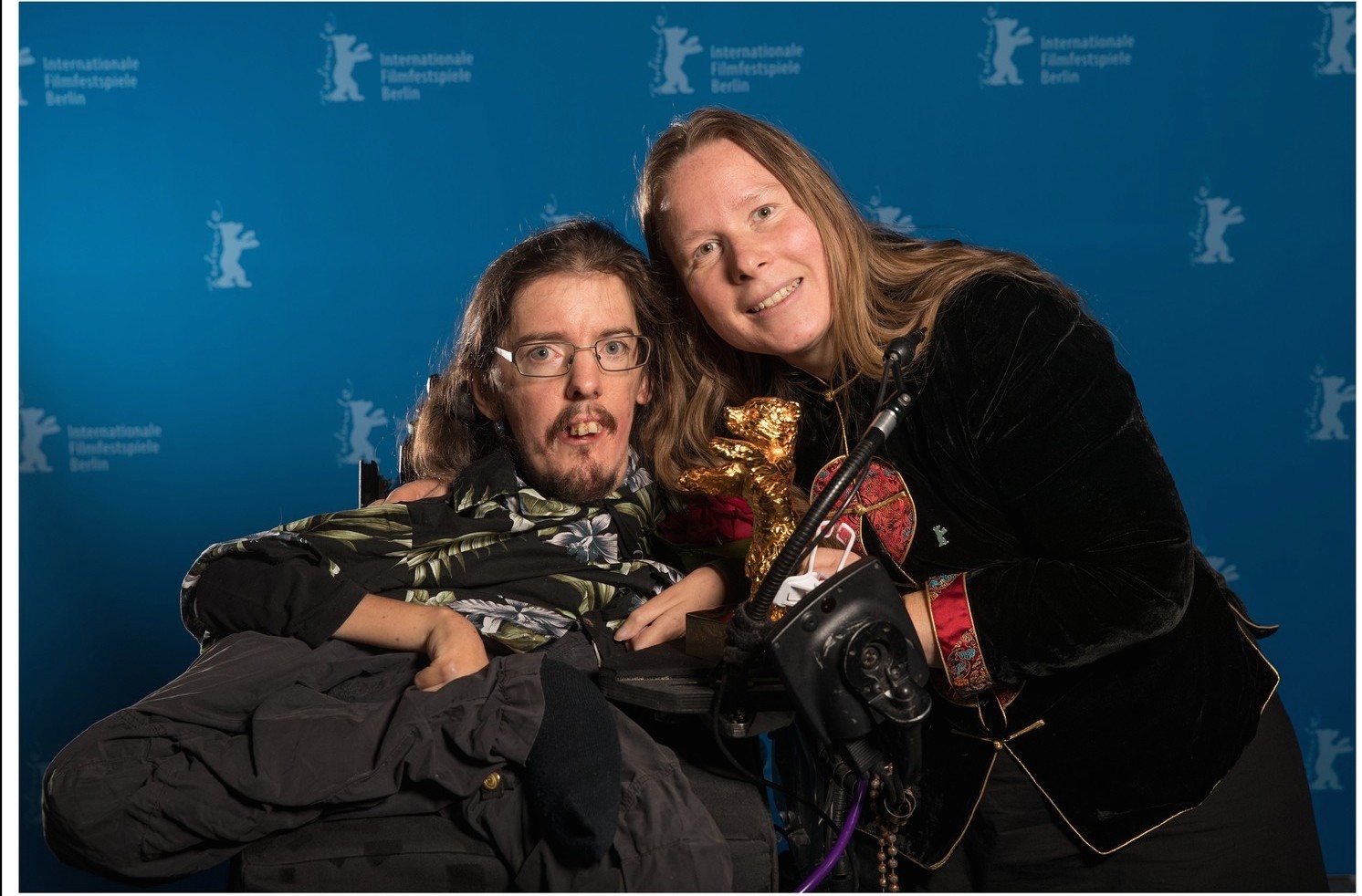 Второй ключевой мотив – относительность, точнее, абсурдность нормы. Доказательством того, что норма – это бред, служит история психотренинга с участием исландского актера Томаса Лемаркиса («Ной белая ворона», «Бегущий по лезвию 2049») и Кристиана Байерлейна, настоящего инвалида, человека с предельно деформированным телом, в котором «исправны» только глаза и член. Почти парализованный Кристиан оказывается свободнее и раскованней актера; более того, этот маленький человек выступает в фильме проводником (при помощи своей сиделки Грит) в мир секс-оргий. И fuck норму! (на фото Кристиан и Грит радуются победе фильма)