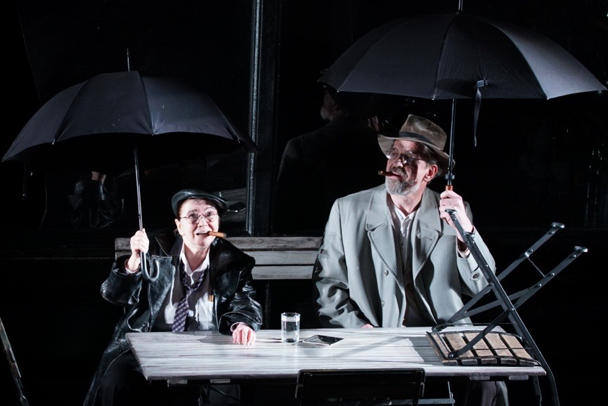 Ну а Римас Туминас в вахтанговском «Царе Эдипе» ставит велеречивую античную трагедию Софокла «как написано», совместно с Национальным театром Греции, облачая хор афинских перформеров в черные костюмы с галстуками, но сохраняя абсолютно вневременной постановочный слог, лишенный малейших аллюзий на современность и быт.