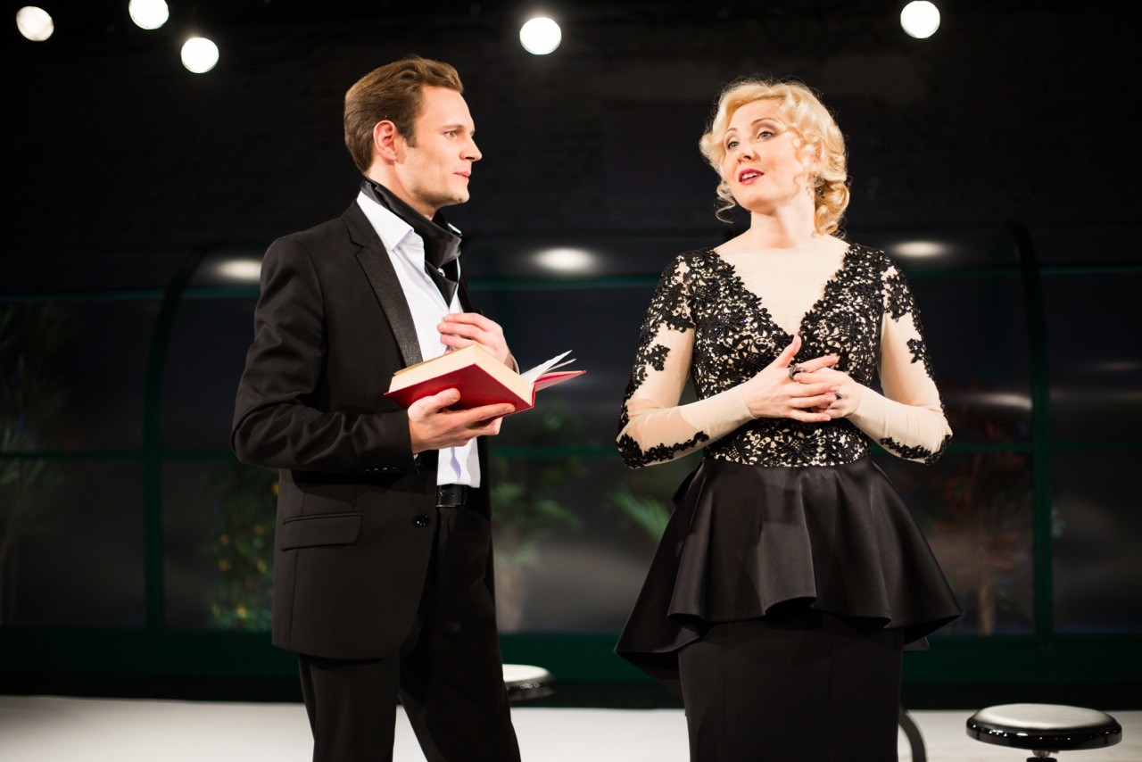 Другой, но уже респектабельно-буржуазный сюрприз «Маски» – «Месяц в деревне» Бориса Мильграма на «Сцене-Молот» пермского Театра-Театра: куртуазный, будто писал не Тургенев, а Де Лакло, спектакль, разыгранный на ослепительно белой площадке с пятью концертными стульчиками и зеленой оранжереей вместо задника (в ней, должно быть, также душно, как там, где плетут кружева, и среди зеленых пальм в кадках затесалось одно увядающее дерево с пожелтевшими листьями). Быстрый театр, в котором все второплановые герои удалены, ничего лишнего и темп, в котором играют главные действующие лица, близок не романсу, но хип-хопу – при тонком графическом рисунке: Мильграм в кои-то веки почти не ударяется в оперетту. Студент Беляев – пухлощекий олух. Ракитин – тонкий и изящный, вот только принимает свою шляпу за жену и довольствуется ролью комнатной мыши, с которой поигрывает кошка.