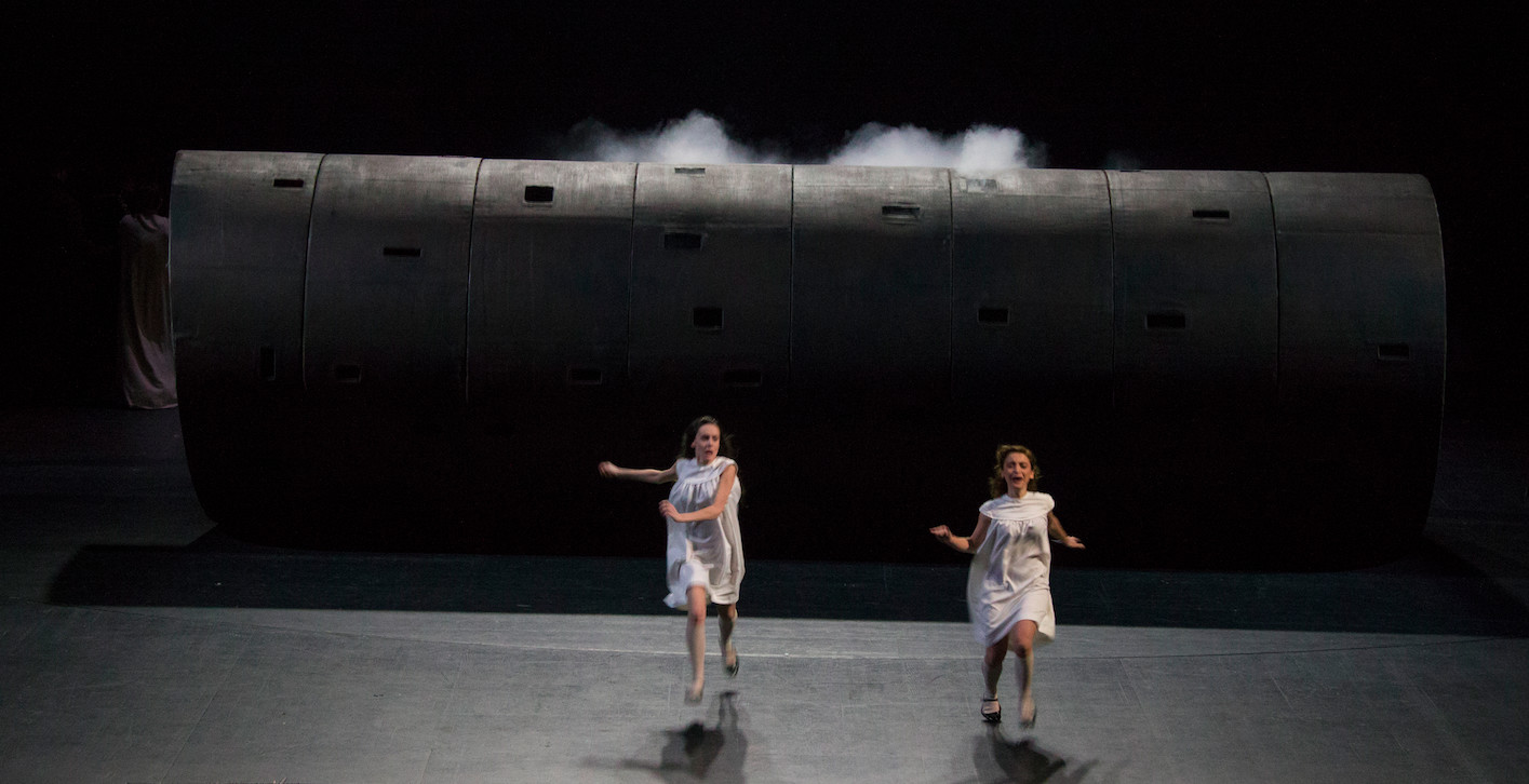 «Царь Эдип» же, кажется, вовсе не предполагает какой-либо живой реакции, только сдержанное любование точёной поступью исполнителей, грозными перекатами исполинской бурой трубы, придуманной сценографом Адомасом Яцовскисом, под трагедийную музыку Фаустаса Латенаса.