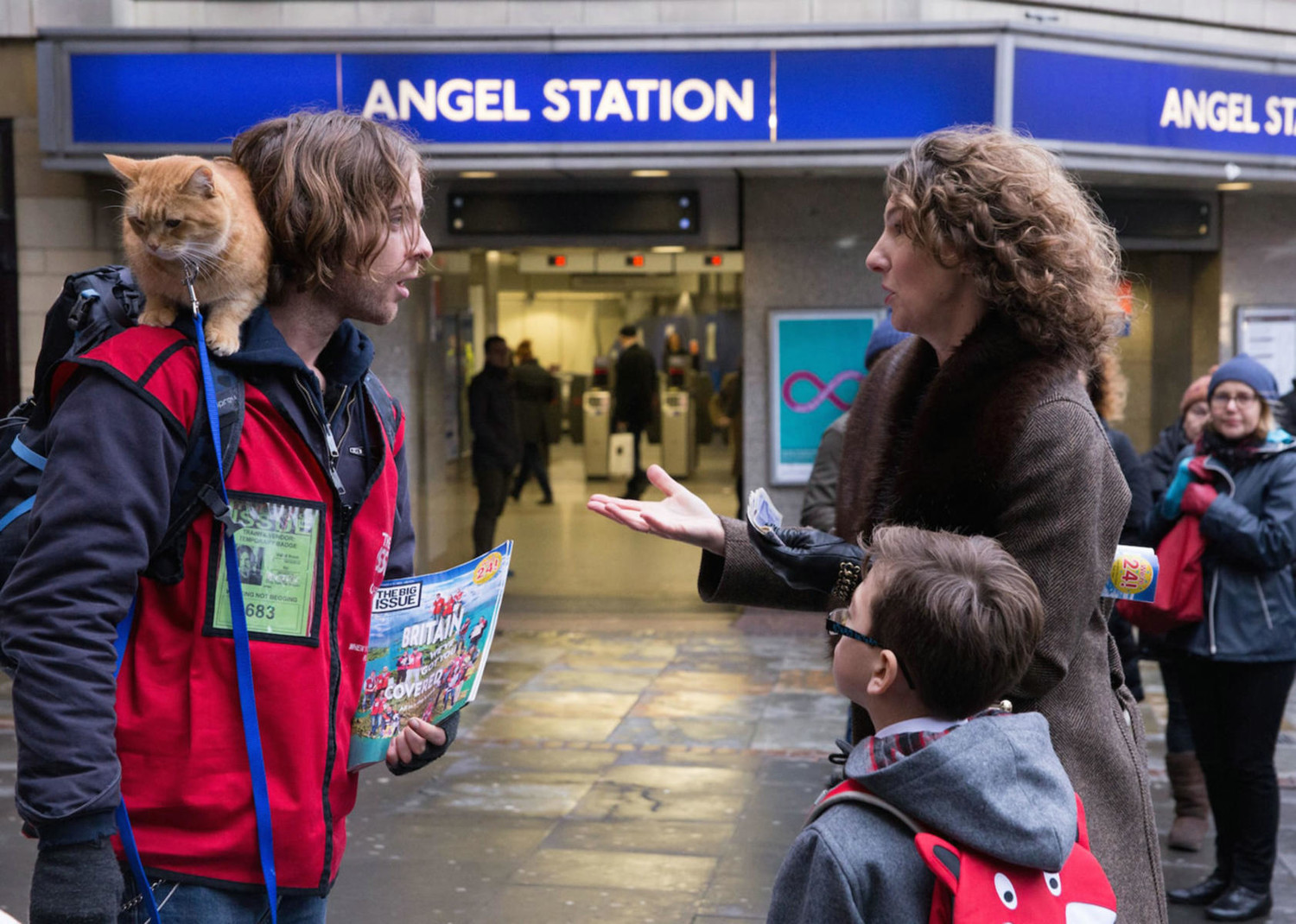 Чтобы сохранить доверительную интонацию, на роль соседки Джеймса – социально активной вегетарианки 4-го уровня Бетти – Споттисвуд позвал Руту Гедминтас: вовсе не по причине её участия в популяных телесериалах «Борджиа», «Тюдоры» и «Штамм» – в закадровой жизни Рута встречается с Трэдуэем. Познакомились они на съёмках фильма «Музыка нас связала», в 2011-м году показанном на нашем фестивале «Бритфест». Тогда Люк гостил в Москве, представляя «Музыку» и задорный фантастический экшн «Чужие на районе». Для тех, кто помнит тот визит, просмотр «Уличного кота» – как встреча с добрым знакомым. Теплый фильм, с какой стороны ни взгляни.