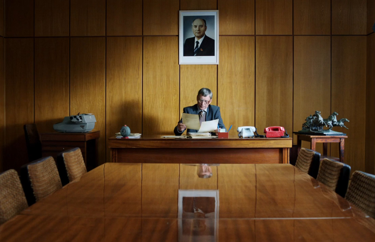 А монолог Василия Нестеренко, бывшего директора Института ядерной энергетики при Белорусской Академии наук, – рассказ о преступлении власти, замалчивавшей опасность катастрофы – начинается с плана высокопоставленного официального лица, сидящего под портретом Горбачева.