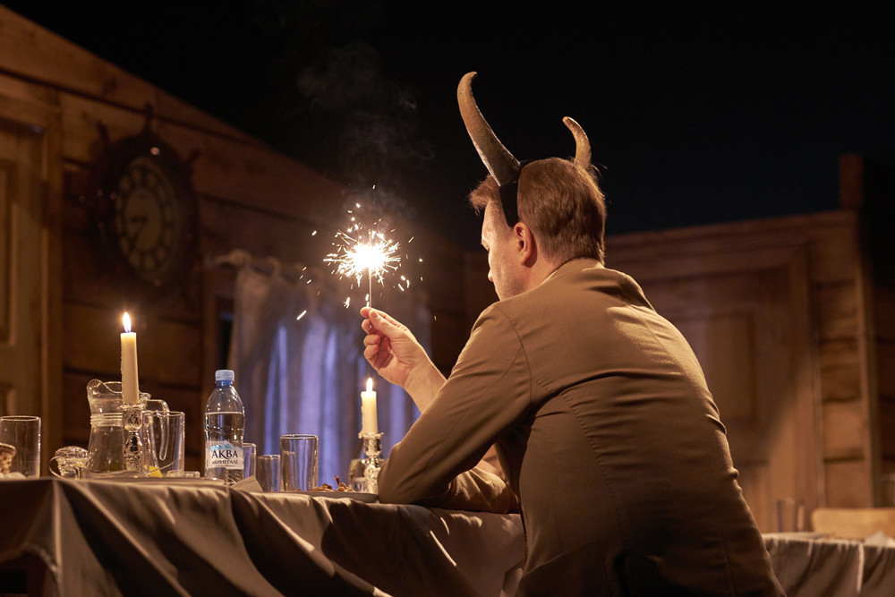 Кулябин не спешит «включать» чеховский текст, некоторое время здесь идет жизнь, будто схваченная врасплох, home video реального застолья, пока, наконец, тумблеры воображаемого невидимого пульта не меняют громкость, выводя на передний план заданные драматургом реплики.