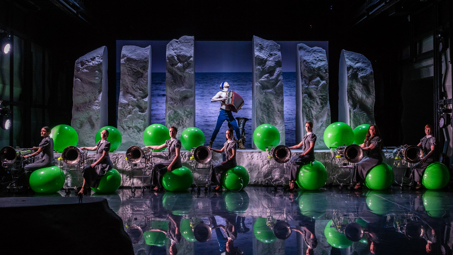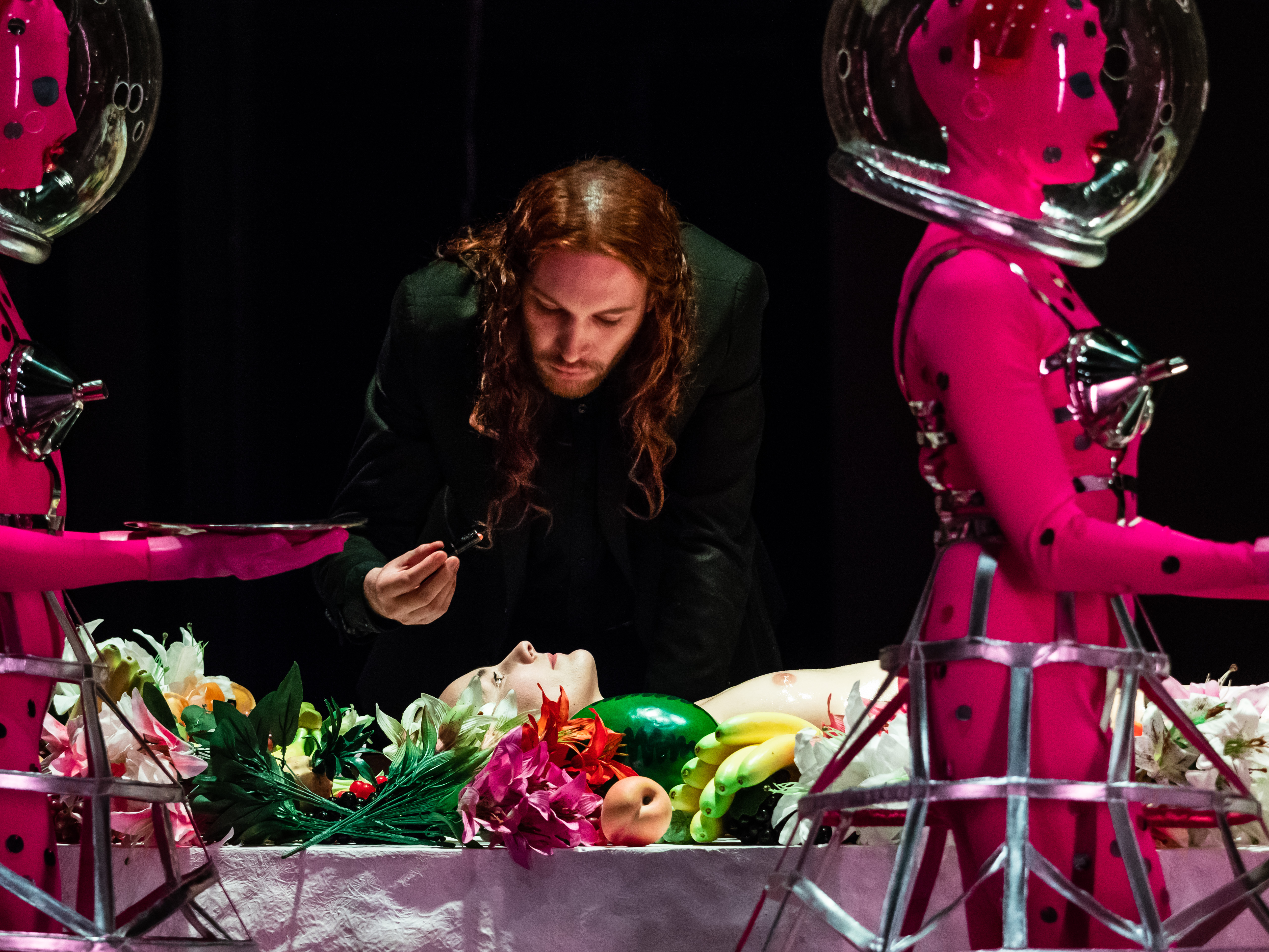 Одни и те же сцены-первоисточники проигрываются вновь и вновь – но абсолютно по-разному; меняются темпы, ритмы, тональности, стили, модели; ритуал продолжается свистопляской рок-концерта, пародия оборачивается трагедией; сценография Ивана Кочкарёва перестраивает подвижные белые объекты в сотни архитектурных композиций; почти безостановочно видеосопровождение – от гиперреалистического до абстрактно-анимационного; артисты беспрестанно жонглируют и обмениваются ролями – и Орфеем здесь может стать вчерашний Коридорный.