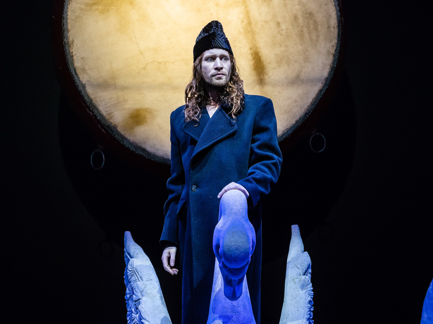 Материальное же воплощение музыкальности – лебеди, «белыми нитями» связывающие фрагменты в единую фреску. Лебединый крик звучит вместо обычных театральных звонков (впрочем, обычных в Электротеатре и не бывает), механические птицы (иногда – торжественные, иногда – потешные) проплывают по игровому полю под чутким радиоуправлением рабочих сцены.