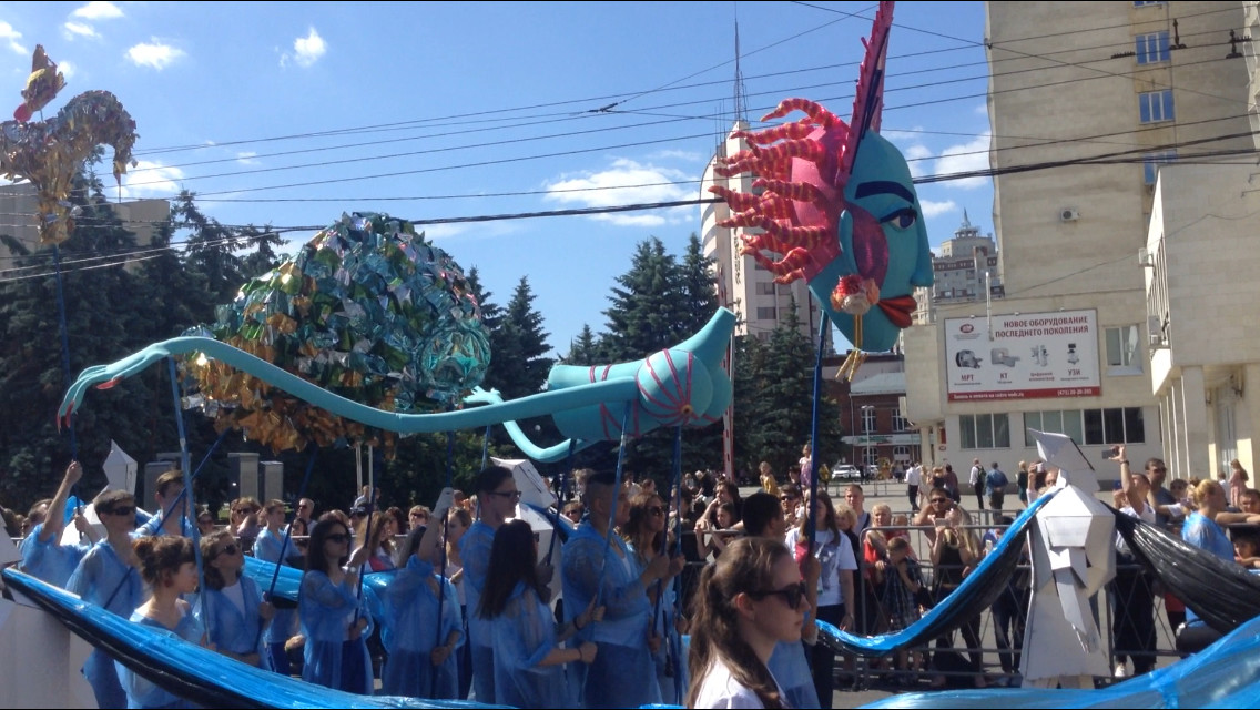 «100% Воронеж», спектакль-открытие фестиваля, чётко сформулировал – даже не словом, а действием, бесконечными слияниями и разветвлениями человеческих потоков – насколько мы все связаны. Проходящий в Воронеже в 8-й раз Платоновский фестиваль искусств тоде попал в неожиданную зависимость – от Чемпионата мира по футболу, внесшего коррективы в первоначальные планы. Когда друзья спрашивали: «А что, твой Воронеж принимает ЧМ?», я гордо отвечал: «Вот ещё, зачем нам какой-то футбол, у нас есть Платоновский!» (хотя, конечно, нынешнее униженное состояние команды «Факел» – немного и моя боль, пусть мне и плевать на спорт). Но незадолго до начала фестиваля выяснилось, что Воронеж всё-таки немного участвует в мундиале – тут тренируется сборная Марокко. И по этой причине службы безопасности запретили проводить традиционный театральный парад 12 июня на традиционном месте – проспекте Революции. Ничего страшного, «Пушкинские игры» – так называется парад-дуэль 2018-го – прошли по другой центральной улице, Кирова, и завершились на площади Ленина, у торжественных колонн оперного театра. Но сам перенос театрального шествия из-за отдаленного эха большого футбольного карнавала – еще один штрих к картине общего мира и глобальной взаимозависимости.