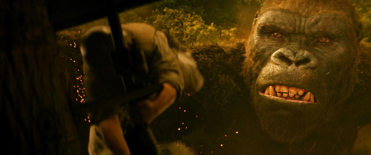 Не жалости к титану Конгу, осаждаемому маленькими человеческими агрессорами (геологи не мелочатся и начинают исследования земных пород с ковровой бомбардировки острова), но счастья – от встречи с настоящим большим кино, уникальным аттракционом, не возможным «на торрентах» и VOD. Так захватывало дух в детстве, на «Бездне» и «Романе с камнем»; широкий формат, в новых условиях превратившийся в IMAX-шоу, не заменит ничто – при условии, что режиссер владеет киноязыком. А Джордан Вот-Робертс говорит на нем очень складно. С одной стороны, трудно поверить, что этот человек дебютировал в 2013-м году камерной атмсоферной картиной о подростках на каникулах «Короли лета». С другой, не важен бюджет, важно понимание: кино – это то, что не только рассказывает, но и показывает историю.