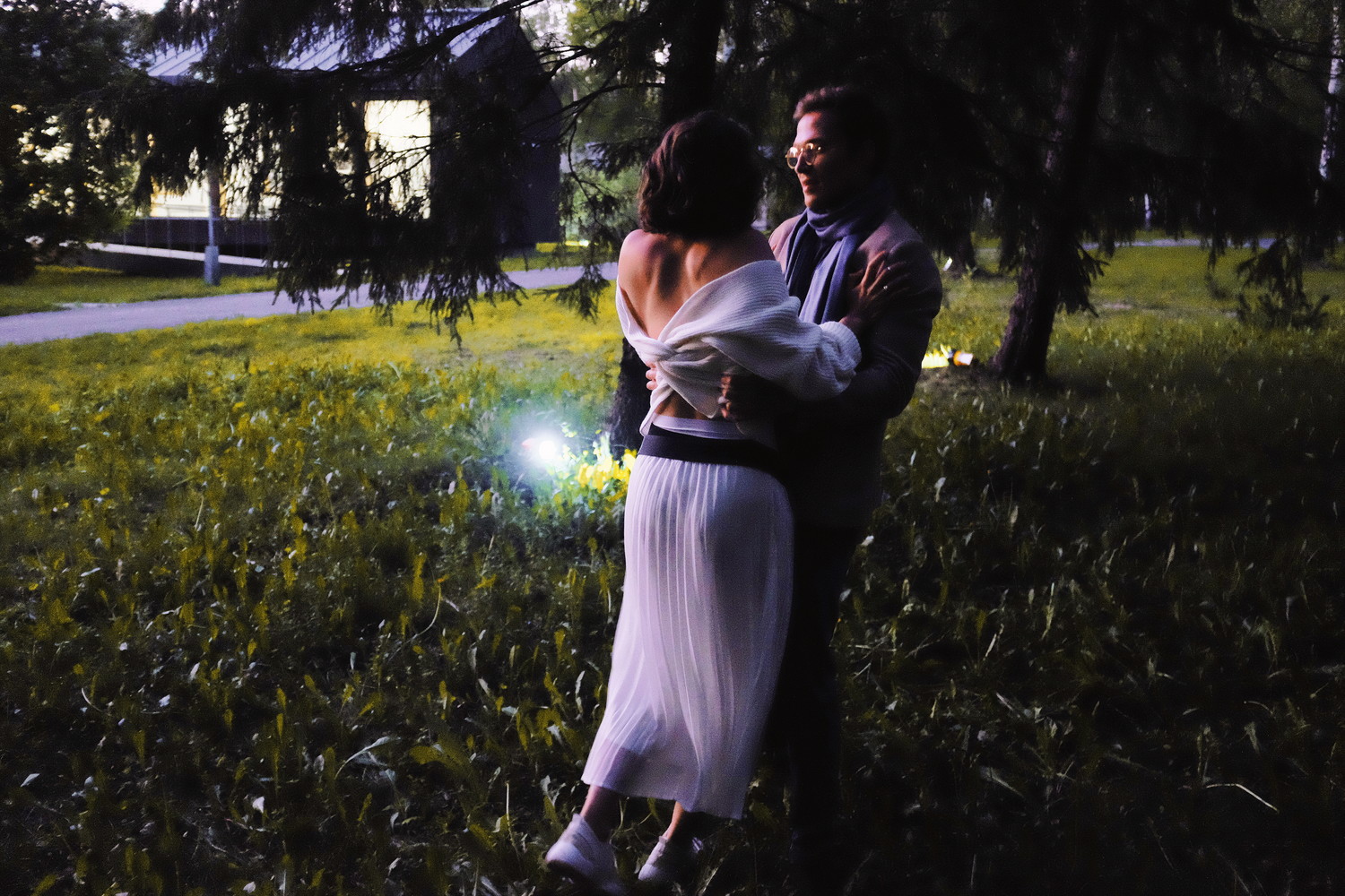 Союз естественного закатного света и искусственной иллюминации, дивная природа – за границами резиденции открываются такие дали, от которых захватывает дух: в момент свидания Тригорина с Ниной, где Аркадина – случайный свидетель, смотришь на луга и холмы, покрытые молочной пенкой ночного тумана, – и с головой проваливаешься в русскую вечность и русскую мистику, без специальных режиссерских усилий.