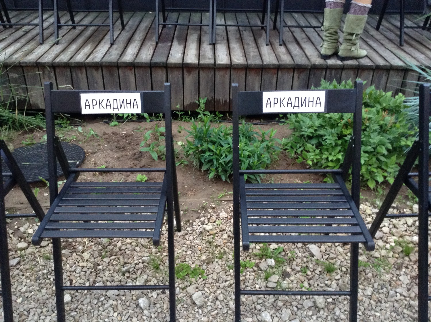 (Инсталляция Алексея Мартинса «Чёрный лес», «дебютировавшая» в Парке Горького, обросла «найденными одеждами», став, очевидно, частью природной декорации спектакля). И когда театр начинается, испытываешь лёгкую озадаченность: настроился, вроде как, на эксперимент, а тут для двух рядов зрителей под открытым небом начинают разыгрывать «Чайку» – близко к тексту и без особых новаций; только число персонажей редуцировано.