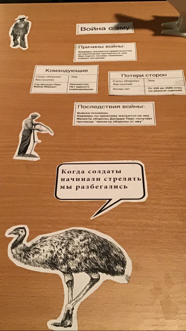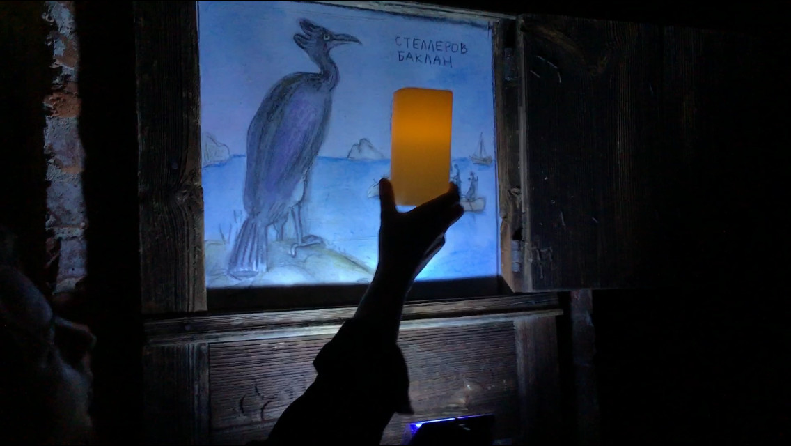 Вы весело, под кадры, проецируемые милым архаичным кодоскопом, разучиваете птичьи трели, а текст на столе напоминает про кровь и истребление.