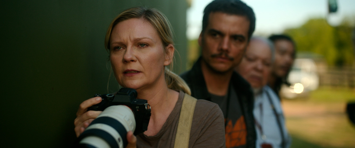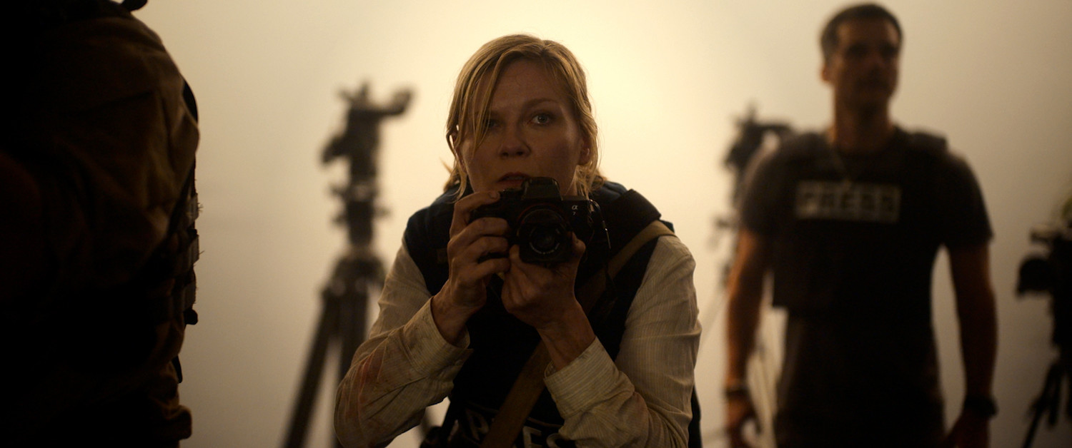 Журналистам тоже достаётся; бейджи и жилеты с маркировкой профессиональной принадлежности безопасность не гарантируют. И для неопытной Джесси (Кейли Спэни, «Присцилла и я») первый бой мог бы стать последним, если бы матёрая Ли (Кирстен Данст), фотограф с многолетним военным стажем, носящая имя в честь реальной легенды, военкора Ли Миллер, не поделилась тем самым жилетом-оберегом. На следующее утро Ли, её коллега-побратим из Reuters Джоэль (бразилец Вагнер Моура, «Элитный отряд»), юная протеже Джесси и хромой старик Сэмми (король колоритного второго плана Стивен МакКинли Хендерсон), пишущий «для того, что осталось от New York Times», рванут в Вашингтон, надеясь первыми проинтервьюировать президента – пока живой...