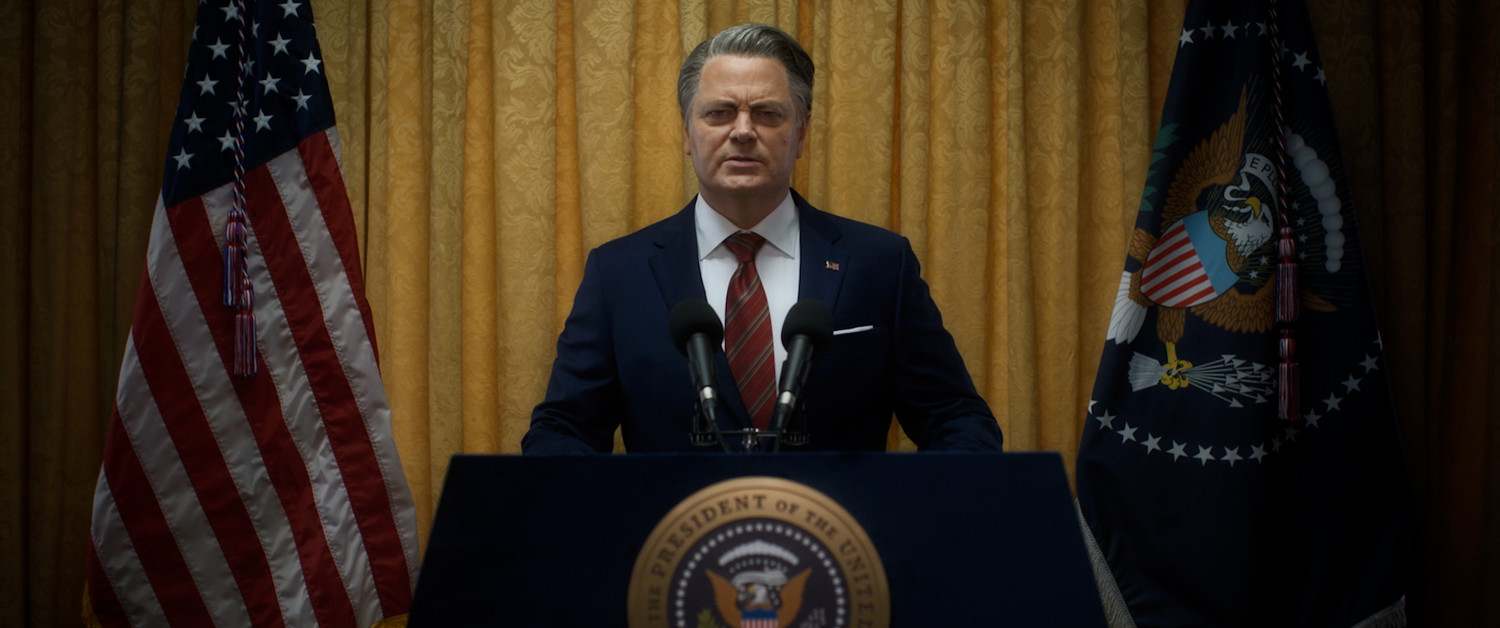 Любой абсурд, мы уже знаем, ещё как жизнеспособен, но всё-таки хотелось бы объяснений, у Гарленда же не ясна сама суть конфликта. Вроде как, за Вашингтон и должны быть Силы Запада, если «сепары» – это южные штаты (единственным более-менее подробно изображённым злодеем выступает типичный реднек, белый ура-патриот в карикатурном исполнении рыжебородого Джесси Пимонса), но нет. И в чём смысл брать интервью у президента, который не жилец и который почему-то хочет всю прессу убить? И чем, в конце концов, этот презик-задрот (Ник Офферман) всем так насолил?