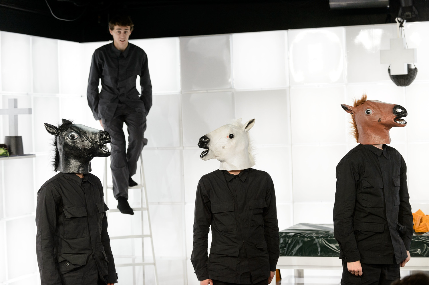 Проект Мастерской Брусникина. Фантасмагория по пьесе Михаила Дурненкова. На основе реальных событий – общественного нездоровья России 2010-х годов. С исполненным на фоно, трещотках и дуделках «академическим панком» Настасьи Хрущёвой. Подробно – здесь.