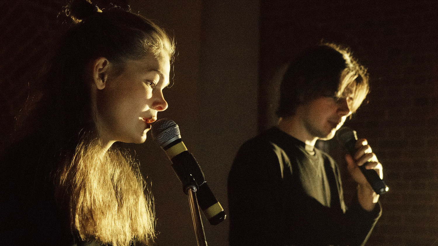 Этот спектакль, в отличие от «Ведьм», в Электротеатре больше вряд ли появится – слишком сложно собрать его интернациональную команду. Тем не менее, без этого смешного мотылька, мелькнувшего в осенних сумерках и оставшегося в памяти невесомым радостным приключением, итоги-2018 были бы неполными. «Транскрипция ошибки» – самый лёгкий спектакль, когда либо появлявшийся в Электротеатре; комедия ошибок и странной музыки, построенная на милом абсурде и изощренном саунде. Напоминает Филиппа Кена и «Проект необычных погодных явлений» Тома Луца; впрочем, и Чаплина или Блейка Эдвардса напоминает тоже. И анимацию – потому что персонажи (каждый из актеров-музыкантов играет сам себя: Мириам Сехон – Мириам Сехон, Владимир Горлинский – Владимира Горлинского, Мартон Ковач – Мартона Ковача и т.д.) время от времени превращаются почти что в мульт-героев: когда их заедает или несёт на ускоренной перемотке. Действия и монологи дробятся, повторяются и спотыкаются – только все эти запинки и нескладности разыграны как по нотам. Нарочито неуклюжие обращения в зал (Ковач щеголяет венгерскими скороговорками и неплохо освоенным русским, Горлинский вспоминает про участие в международных конкурсах гитаристов в Ельце и Воронеже, Сехон – о выходе на сцену, вероятно, СТИ, в стиле Жанны Моро) – часть партитуры; границы между речевой и музыкальной эксцентрикой стёрты.