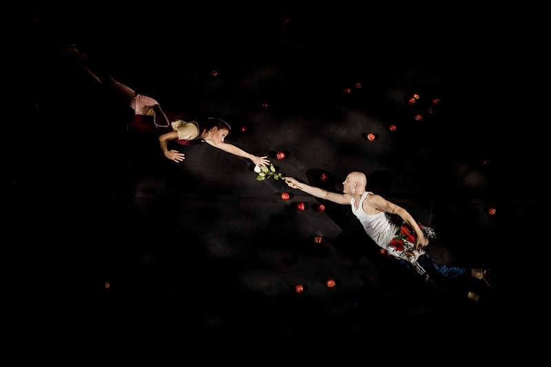 Три танцевальных спектакля Камерного – три затейливые антиутопии. Абстрактное полотно с конструктивистскими мотивами русского авангарда «Мы» – по Замятину. Почти повествовательный sci fi-триллер о голливудском сценаристе и его футуристическом проекте «Безмолвная весна» – по Олдосу Хаксли. «Apples & Pies» же вдохновлен произведениями, никакого отношения к жанру не имеющими: рассказом Бунина «Антоновские яблоки» и пародией Куприна, высмеявшего бунинскую слезливую медоточивость в «Пирогах с груздями».