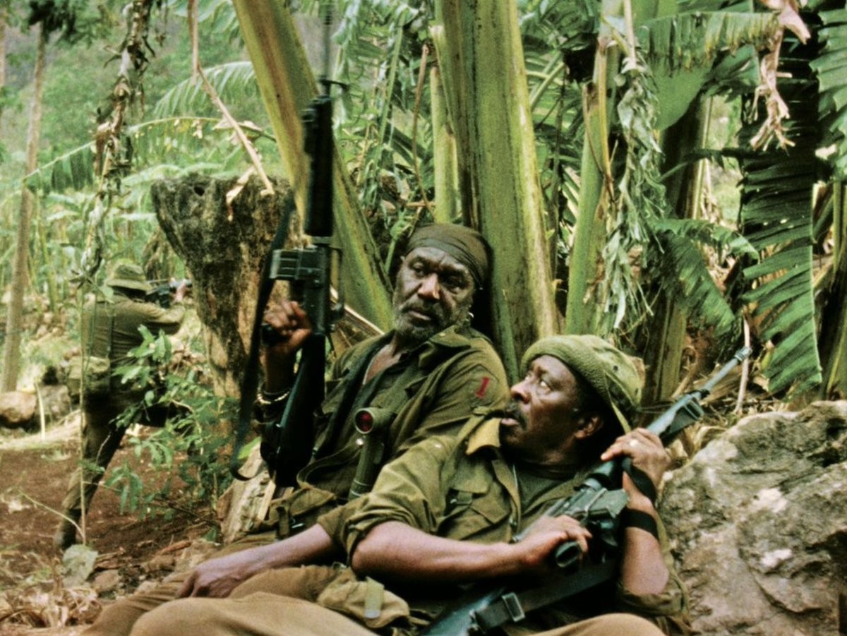 Спайк Ли, который должен был возглавить жюри неслучившегося Каннского фестиваля, – из тех великих режиссёров, у которых с годами гениальность начинает граничить с маразмом. Выпущенный одиозным Netflix фильм – среди самых странных и обескураживающих опытов нашего времени. Дело даже не в том, что в военных флешбеках Ли – будто в пику «Ирландцу» Скорсезе – отказывается омолаживать героев: только Норман остался навеки 18-летним, а все четверо его братьев по оружию и в эпизодах 1971-го такие же седые и помятые, как в современности. Это как раз интересный ход, и не он делает батальные сцены гротеском, который подошёл бы «Голому пистолету».