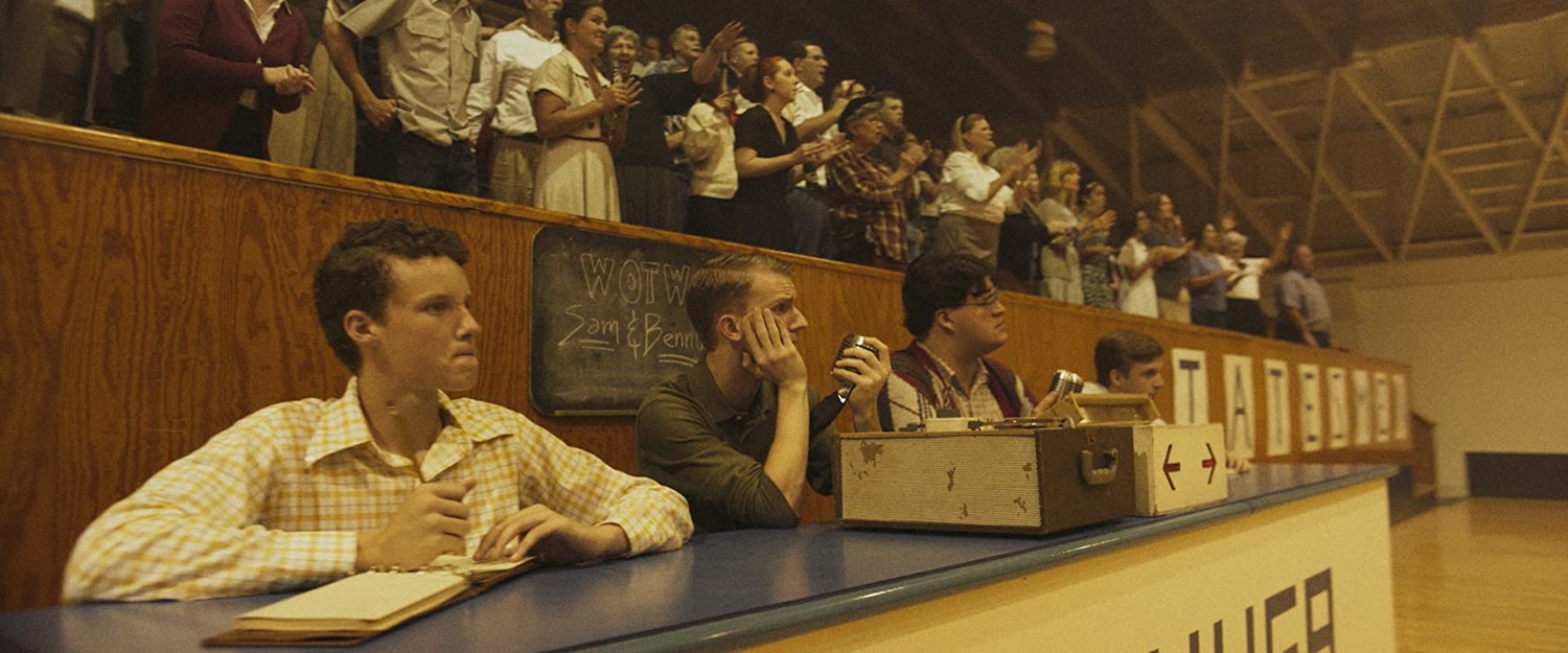 Причём событий за без малого полтора часа – раз, два и обчёлся; всё происходит в реальном времени, минута фильма равна минуте жизни героев. А жизнь эта, даже в такую необычную ночь, заполнена, в основном, быстрыми передвижениями по маленькой Каюге и разговорами. Смотреть, даже если вы неплохо знаете английский, лучше с субтитрами: говорят герои много и быстро, и это не изматывающий пустотой мамблкорный трёп, но чёткий художественный приём: аудиостилизация под кино и радио 1950-х, не формальное, но инсталлированное в саму плоть фильма ретро.