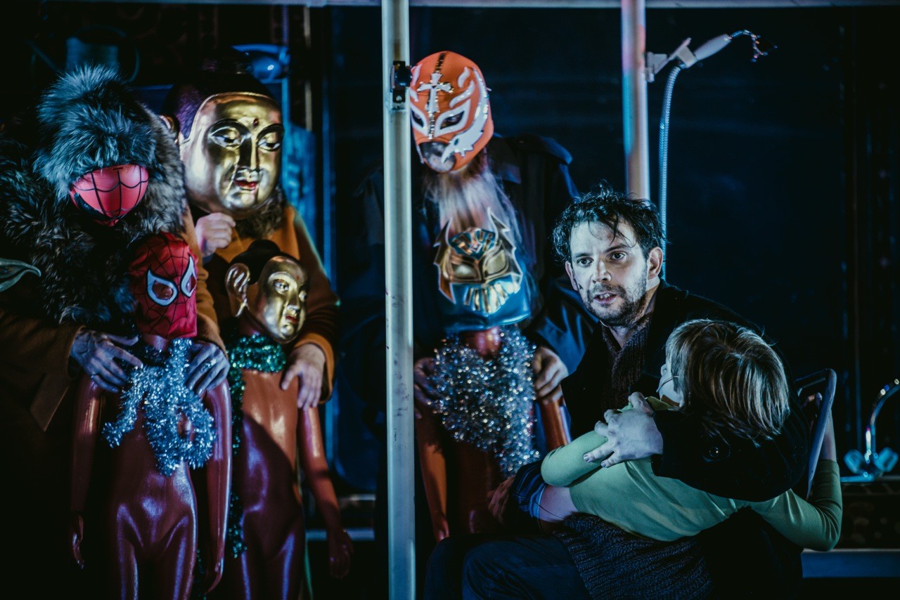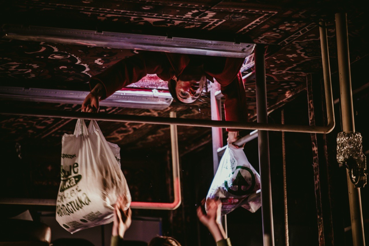 Аид – царство мёртвых в древнегреческой мифологии и инициалы Артюхина Игоря Дмитриевича, приятеля Петрова, главного героя «Петровых в гриппе». В спектакле «Гоголь-центра» Петрова играет Семён Штейнберг, уже работавший с режиссёром Антоном Фёдоровым на спектакле «Ревизор» в театре «Около дома Станиславского» (подробно – здесь; а здесь – о «Пьяных» Фёдорова в Стерлитамаке). В роли Артюхина сразу два актёра – Евгений Харитонов и Михаил Тройник; могло быть и больше – спектакль козыряет избыточностью, а натура у придуманного Сальниковым полумистического Артюхина такая широкая, что хватит на троллейбус в час пик. Общаться с Артюхиным спорадически – круто, а видеться часто – стрёмно, потому что настоящий буйный, найдёт приключения в любой момент. Что обычно немного варёного Петрова и привлекает, и отталкивает. Ладно, сейчас Петров гриппует, как и вся семья – уже бывшая, но ещё близкая жена и сын, Петров-младший, вялость оправдана болезнью – и Штейнберг отважно стирает краски со своей актерской личности, изображая прострацию. В сценической версии романа доминирует хор – те, кто вокруг, сейчас и в лихорадочных воспоминаниях, реальные и не совсем реальные люди (у персонажа Розы Хайруллиной, например, вовсе нет имени, кто она, точнее, оно, – загадка, не предполагающая единой разгадки). Когда-то Петров не был таким квёлым, но то ли плохо закончившаяся дружба с одноклассником, возомнившим себя писателем круче Шолохова, то ли просто судьба отучили Петрова грезить большими высотами. Он – автослесарь, который только на досуге рисует комиксы, на что спектакль намекает видеопроекцией. Обычный, совсем обычный человек – но и для него проницаемы мистические пространства; и Аид – он рядом, без всякого Игорь Дмитриевича.