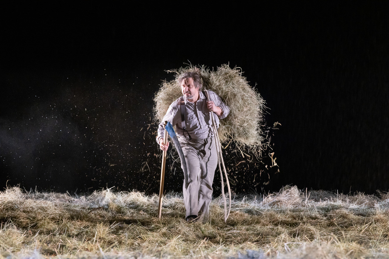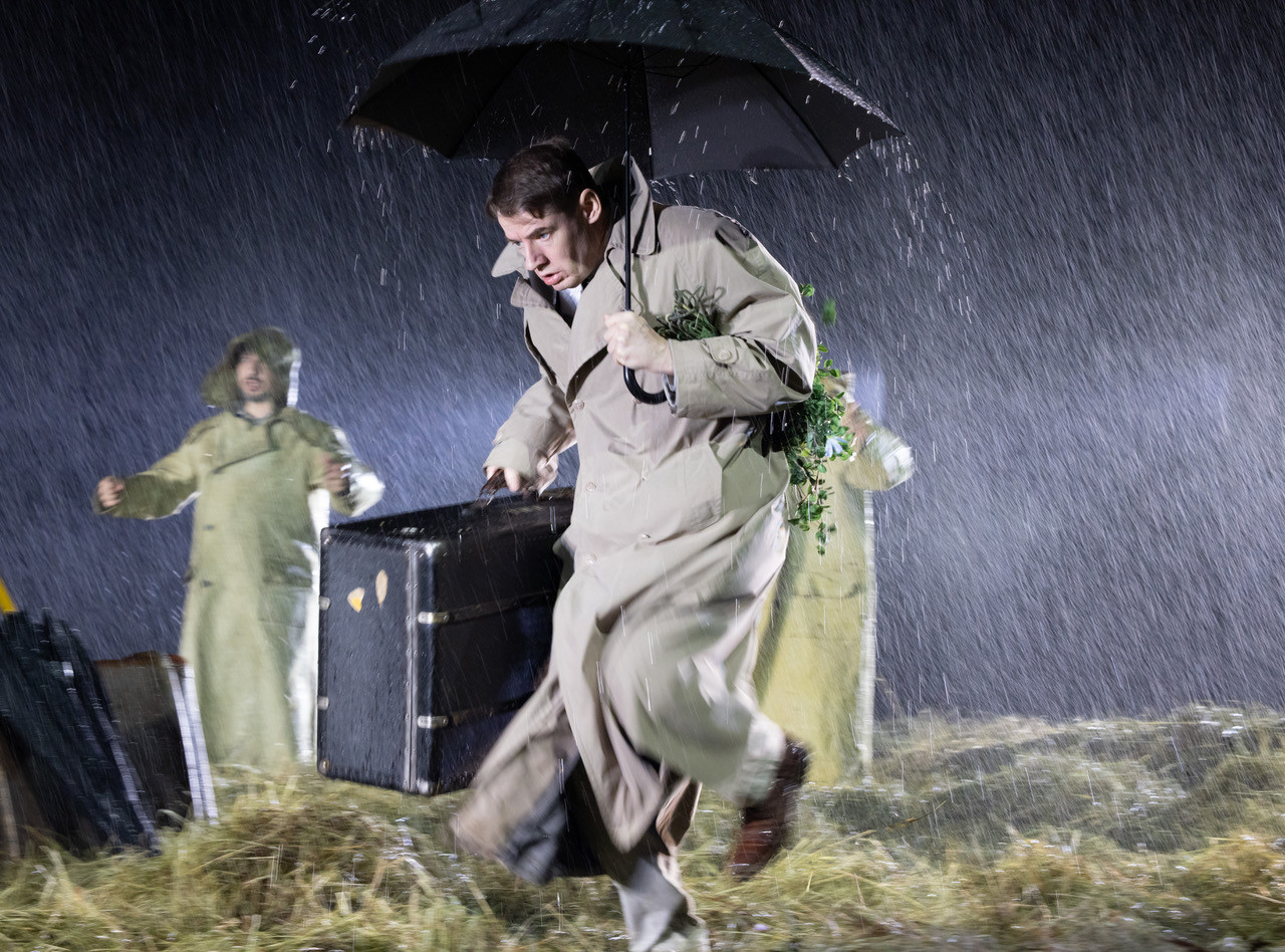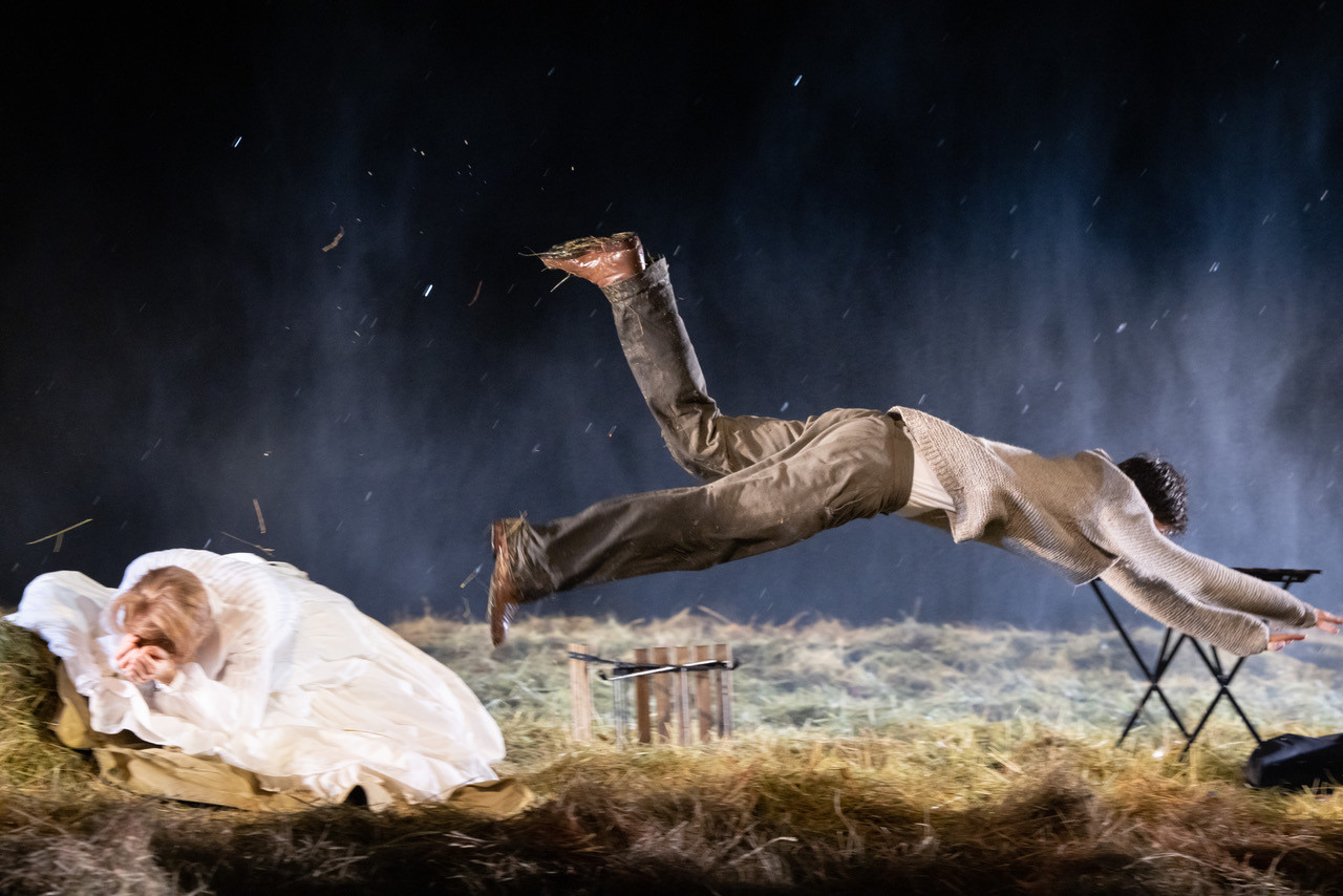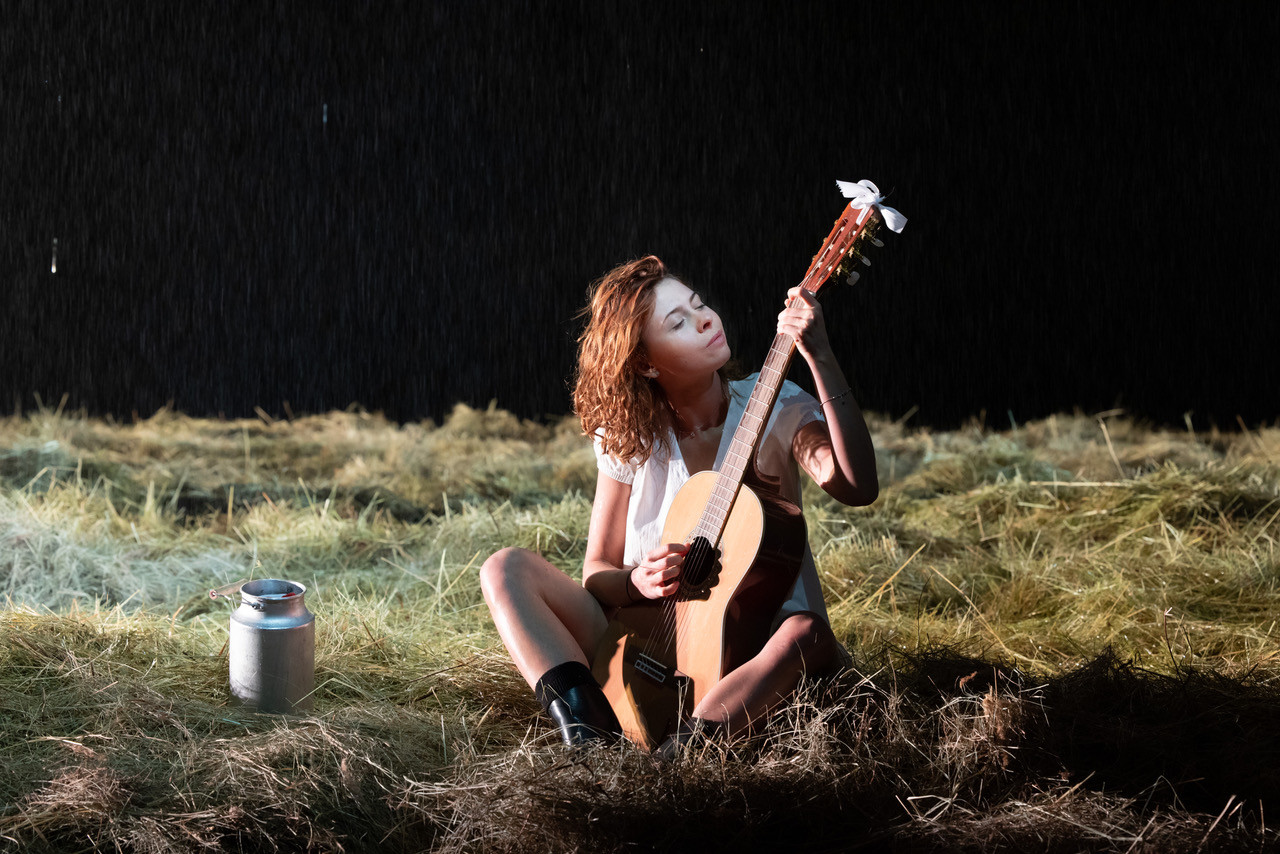 Мхатовские капельдинерши выдают зрителям первых рядов пледы, шутя про формат 5D: почти все четыре часа действия из-под колосников льёт дождь, и зал заполняет пьянящий аромат устилающего сцену сена. Это просто фантастика – чего не скажешь о спектакле в целом.