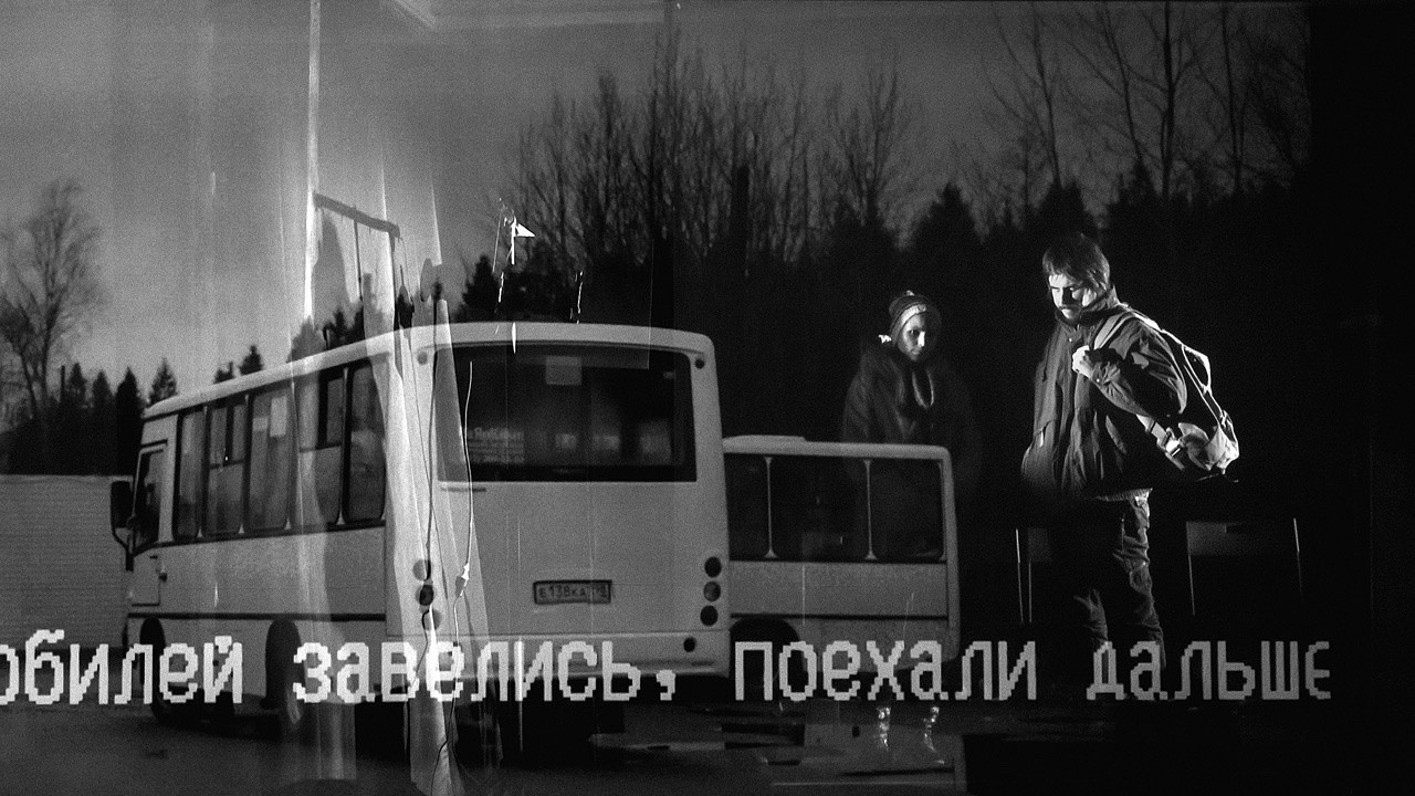 пригородные ж/д платформы без названия, автодороги с автобусами (за которыми тоже проглядывает история – кажется, зловещая, но, опять же, неясно); и похожий на сновидение, «размывающий» картинку экраном.