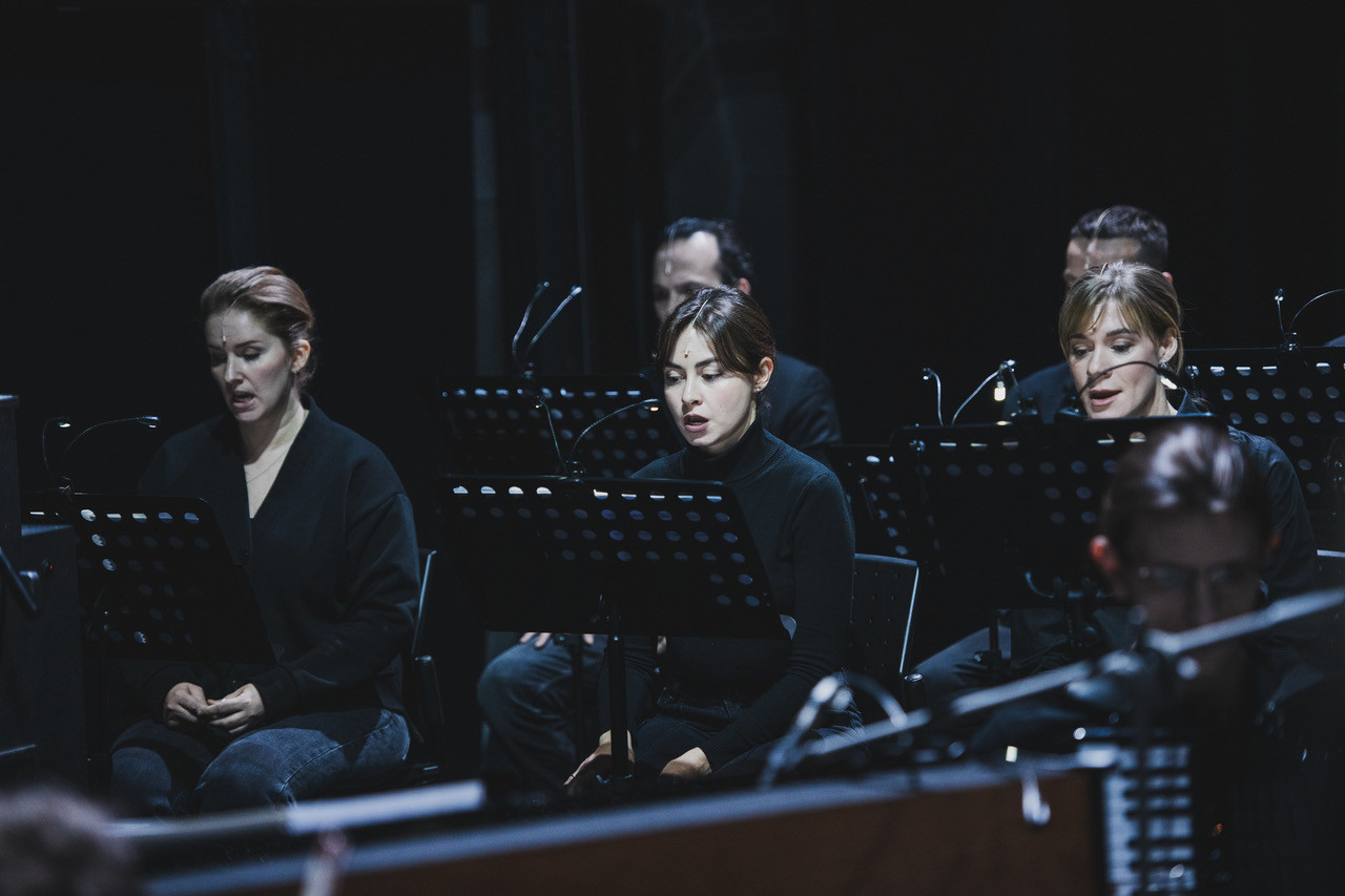 При всей аскетичности спектакля – экран да солисты вокального ансамбля N’Caged, хор ансамбля Questa Musica и оркестр Московского ансамбля современной музыки, ведомые дирижёром Филиппом Чижевским, на авансцене – «Нонсенсорики» обладают эффектом VR-экспириенса. Хотя нет, не совсем точно; виар – всего лишь технология, а в Электротеатре переживаешь, скорее, мистический опыт. И музыка – медиум, превращающий всё сущее в глобальный юханановский инскейп, во вполне себе материальный внутренний мир.