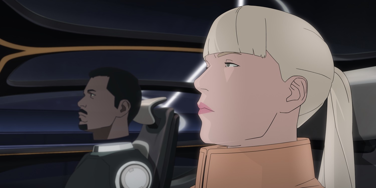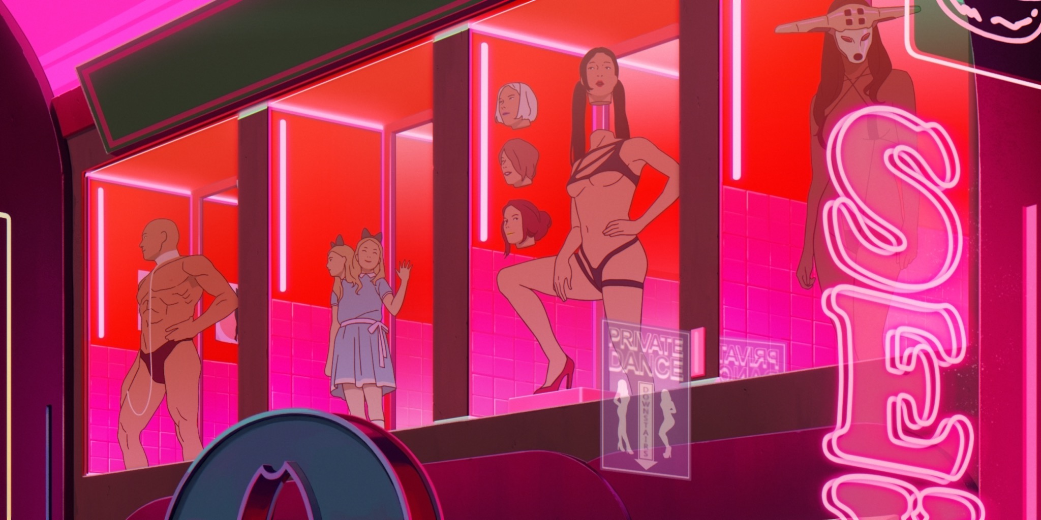 в ловком оживлении всех (не только человеческих) нарисованных героев (заодно спасибо русским субтитрам, добавляющим близких моментов – вроде корпорации «Рокосмос»). Алин неуверенно борется с алкоголизмом; тема с блокировкой всего содержащего градус – повод для мемоёмких шуток. Помимо бутылок с виски, Алин мечтательно заглядывается на пресс одного из фигурантов расследования, университетского преподавателя жертв – у того, впрочем, под боком собственная AI-спутница, с идеальным золотым телом и рогом единорога на лице (сексуальные предпочтения – вещь непредсказуемая).