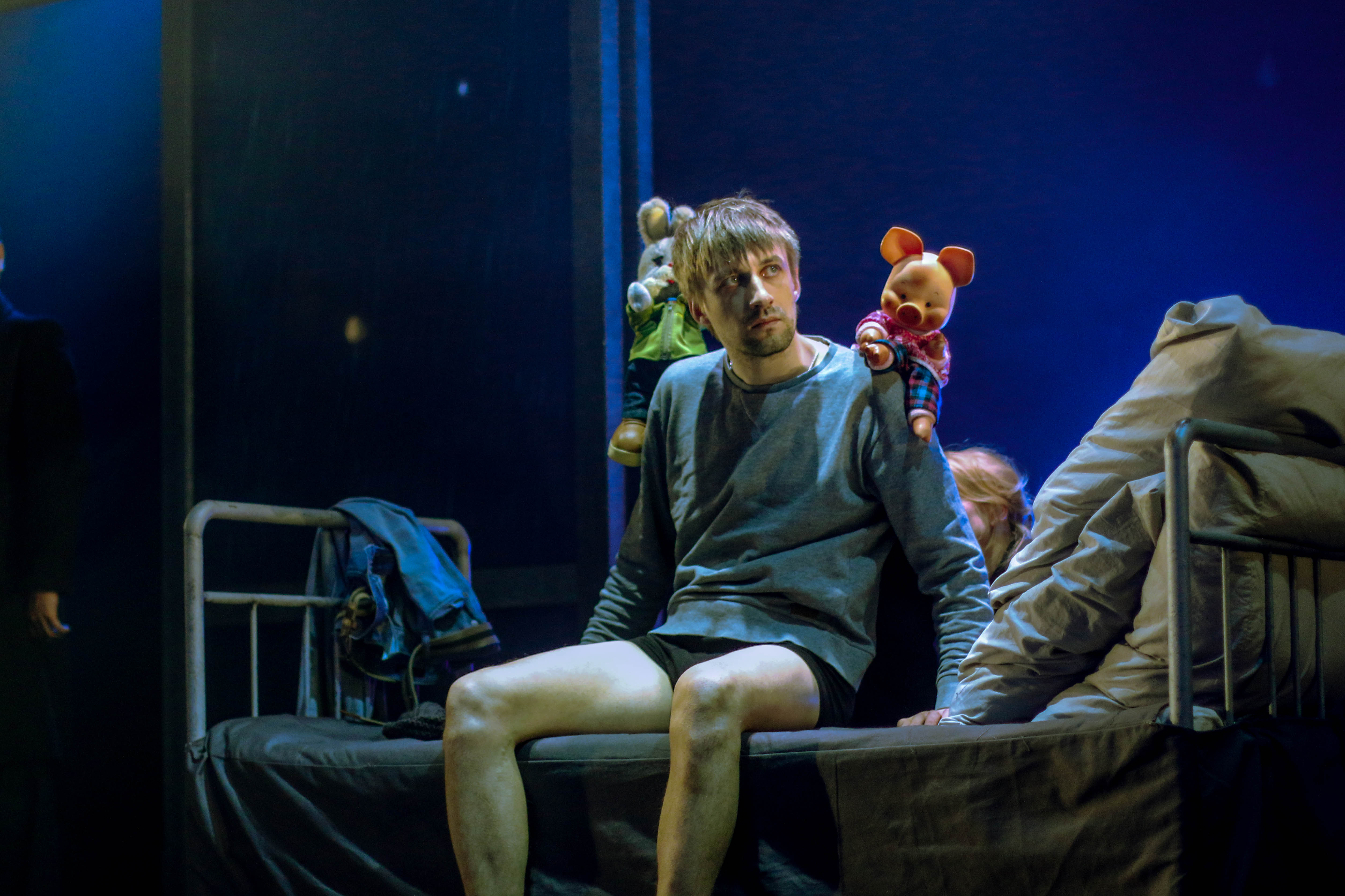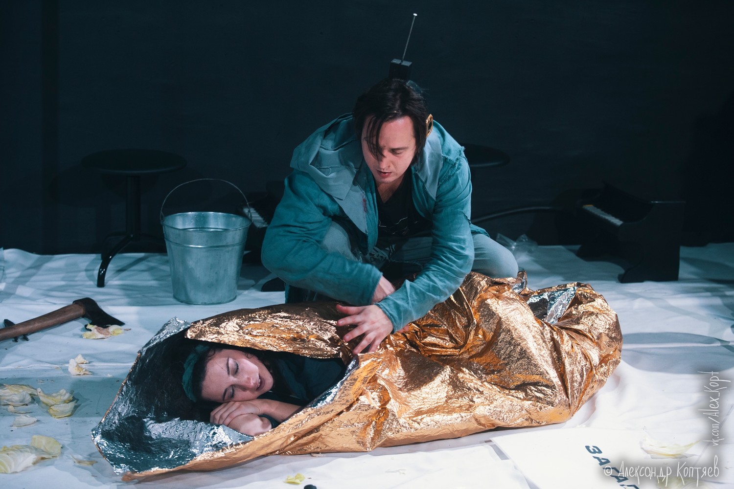 «Мама...» доверие к театру подтачивает – противоядием стали «Летели качели», пьеса Константина Стешика, поставленная Марина Оленёвой в созданном ею пермском камерном театре «Новая драма». В Москве есть свои «Качели» – Марфы Горвиц в «Практике»; там крутейшая минималистичная сценография Ксении Перетрухиной и совершенно неубедительные герои; Антон Кузнецов в главной роли – Стаса, современного 40-летнего, когда-то фанатевшего от «Гражданской Обороны» и на этой почве подружившегося с депрессивной 16-летней девушкой Ксенией, подписывающейся в соцсетях ником Dark Moon – играет дико неестественного типа; ни сочувствия, ни понимания. В пермском спектакле (возможно, потому, что придумывался он вместе с актерами, которые отвечают и за музыку, и за видео на сцене) – абсолютное попадание во всех персонажей. Алексей Корсуков в роли Стаса младше своего героя, но играет предельно точно, и с грешащим чрезмерной литературностью текстом Стешика справляется грандиозно.