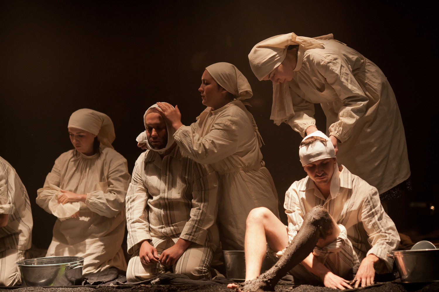 Последнее, в чём я бы хотел быть обвинённым, – это высокомерие. В программе «Маски Плюс» – два спектакля (оба – на татарском языке) из скромных и очень далёких от столиц театров: «Фронтовичка» по пьесе Анны Батуриной поставлена Ильсуром Казакбаевым в Татарском драматическом театре им. Тукая из города Большая Атня, «Папоротник» по рассказам Ркаила Зайдуллы – работа Егора Чернышова в Драматическом театре Буинска. Тут как раз, в отличие от «Ревизора», вопросов к кураторам нет: дело не в том, что «Фронтовичка» с «Папоротником» представляют театры малых городов, а в том, что это тонкие, поэтичные вещи;