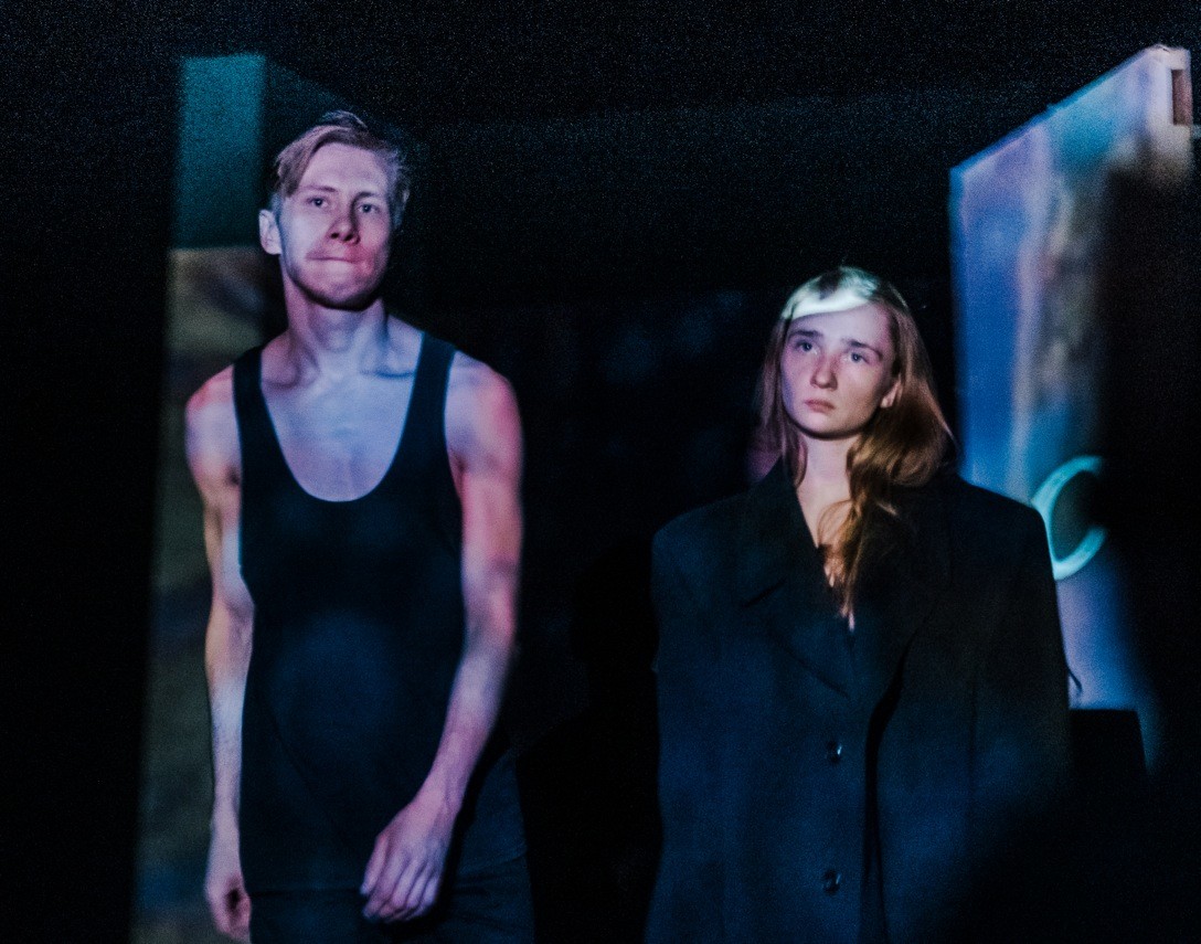 Видимо, чтобы уравновесить «нормальные» спектакли, в «Маску Плюс» включили «Соседа», жанровый эксперимент Дмитрия Волкострелова, о котором я писал в театральных итогах 2019-го года. Вот кадр, не разместить который мне сложно: благодаря отсутствию границ между игровой и зрительской зоной, в объектив Ярославны Ефимовой попал и я;