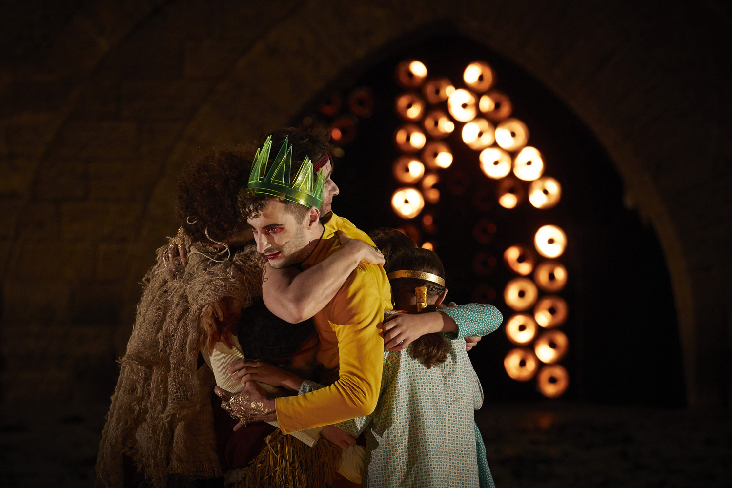 И, что удивительно, с задачей справился без существенных изменений первоисточника (кажется, что слов во французской версии только прибавилось, и спектакль длится два с половиной часа), без иронической деконструкции, видеопроекции и всего прочего, к чему обычно обращаются для «оживляжа» архаики. В этом «Фиесте», конечно, много дорогих современных технологий (нарочито дёшево выглядят только зелёные пластиковые короны на голове Атрея), но используются они незаметно, а «вставляет» спектакль старомодными постановочными средствами. Постдраматический театр – это, конечно, интересно, но и традиционный, так уверенно стоящий на котурнах, рано сбрасывать со счетов акутальности.