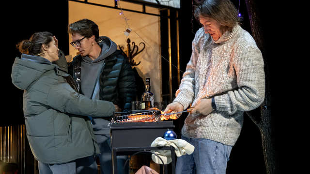 В программке есть спойлер: среди действующих лиц не только персонажи рассказа, но, например, и Ирина Николаевна Аркадина. Можно предположить, что Комаров и артисты театра в Нягани решили взяться за всего Чехова разом; так и происходит – и происходит грандиозно →