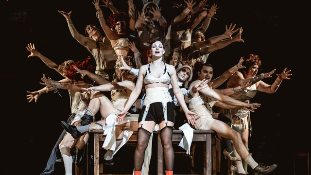 Проводить параллели между 1933-м и современностью – рискованно: не исключено, что они уже запрещены законодательно; и по залу пробегает ледяной ветерок, когда Конферансье спрашивает: «Какой анекдот хотите услышать? На 10 или на 15 лет?» Сравнивать спектакль с фильмом Боба Фосса – бессмысленно: это самостоятельные произведения, основанные на одном и том же материале →
