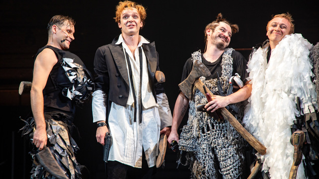 Последняя пьеса Шекспира – фантазия о маге и изгнаннике Просперо – укладывается в первое действие двухактного спектакля; во втором события возвращаются к контрольной точке и проигрываются иначе, ближе к жизни, с кровью и без пощады →