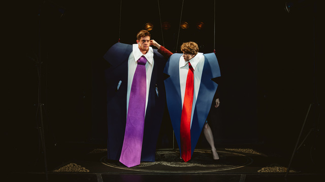 «Игра интересов» (1907) – «кукольная» комедия испанского нобелевского лауреата Хасинто Бенавенте, «Конец пути» (1928) – драма британского писателя Роберта Шерриффа; контрастные тексты переплетаются в одноактном двухчасовом спектакле →