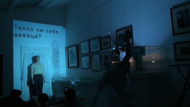 Идёт «Холодная война» в необычном месте – музее-мастерской Дмитрия Налбандяна, «первой кисти Политбюро». В уголке притаился изолированный старым холодильником ЗИЛ бюст Сталина. Тени незабытых предков возникают тут и там, однако высказывается спектакль не столько о конкретном историческом отрезке, сколько о вечных национальных особенностях и мифах →