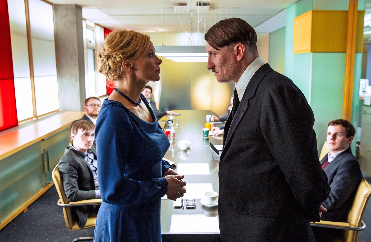 Участник конкурсной программы ММКФ – местами действительно драматическая история, рассказанная актером и режиссером Дани Леви (в «Моем фюрере» он только режиссер, но на фестивале есть свежий фильм, где играет Леви – «Государство против Фрица Бауэра»). Главный герой – актер-еврей (Ульрих Мюхе), чудом избежавший отправки в лагерь Заксенхаузен, дает диктатору уроки сценической речи. Гитлер (Хельге Шнайдер) – инфантильный, склонный к сентиментальной слезе монстр, жертва несправедливых отцовских побоев. Всё это было бы смешно, когда бы не было так грустно.