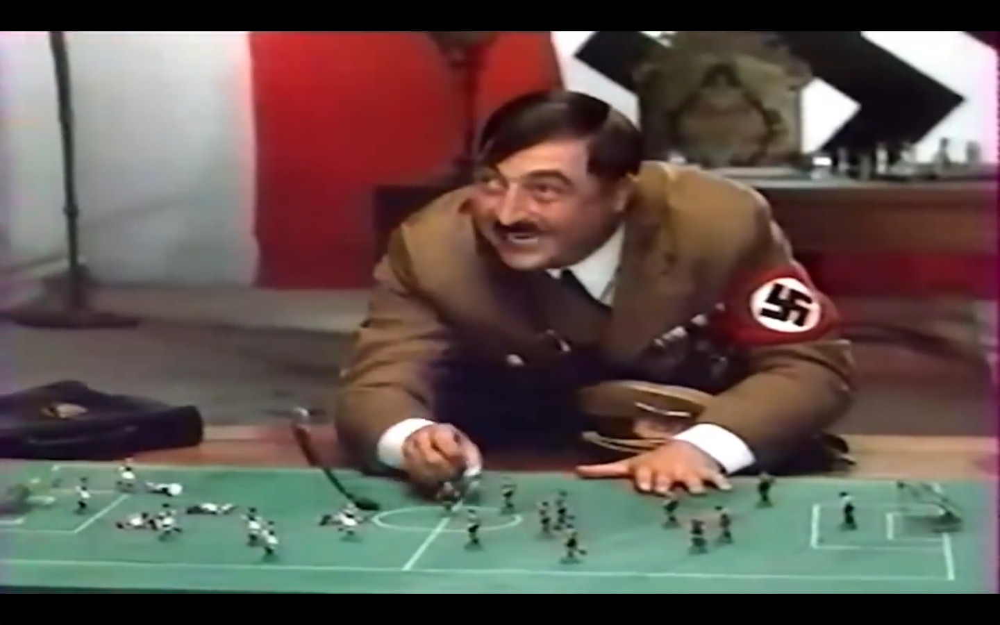 Нарочито глупый французский фарс Филиппа Клера: тут Гитлер привлекает трех пленных кретинов для сражения с Францией на футбольном поле. Качество иллюстрации, в общем, соответствует качеству фильма. Хотя местами всё это безумно смешно.