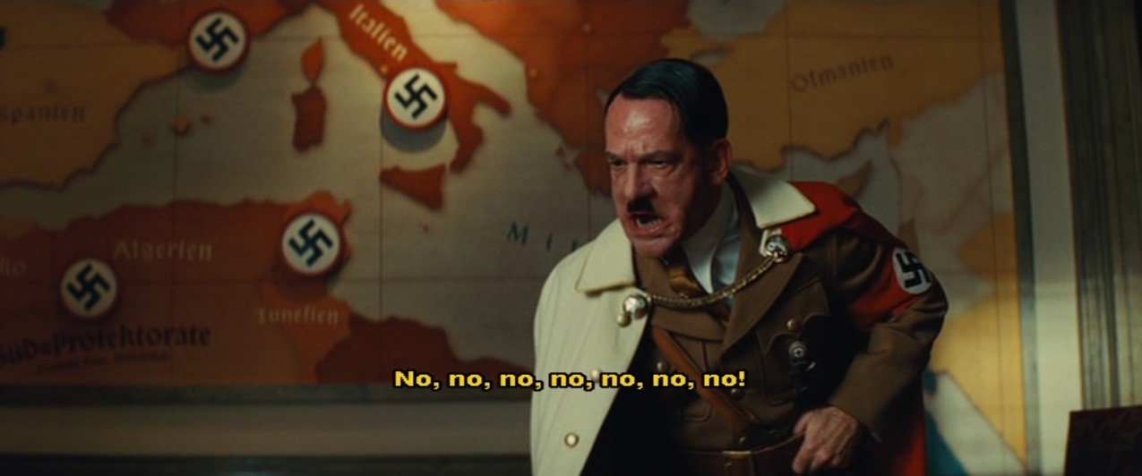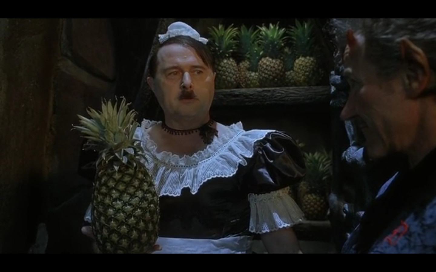 В этой голливудской комедии с Адамом Сэндлером (он играет доброго сына Сатаны, а самого папу изобразил Харви Кейтель) Гитлер – эпизодический, но отлично запоминающийся персонаж. Он живет в аду (который смахивает на ночной клуб с шоу трансвеститов) и ежедневно претерпевает заслуженную пытку: в зад ему черти засовывают ананас. И если фюрер пытается схалтурить и выбрать фрукт поменьше, справедливый Сатана пресекает такие попытки мошенничества.