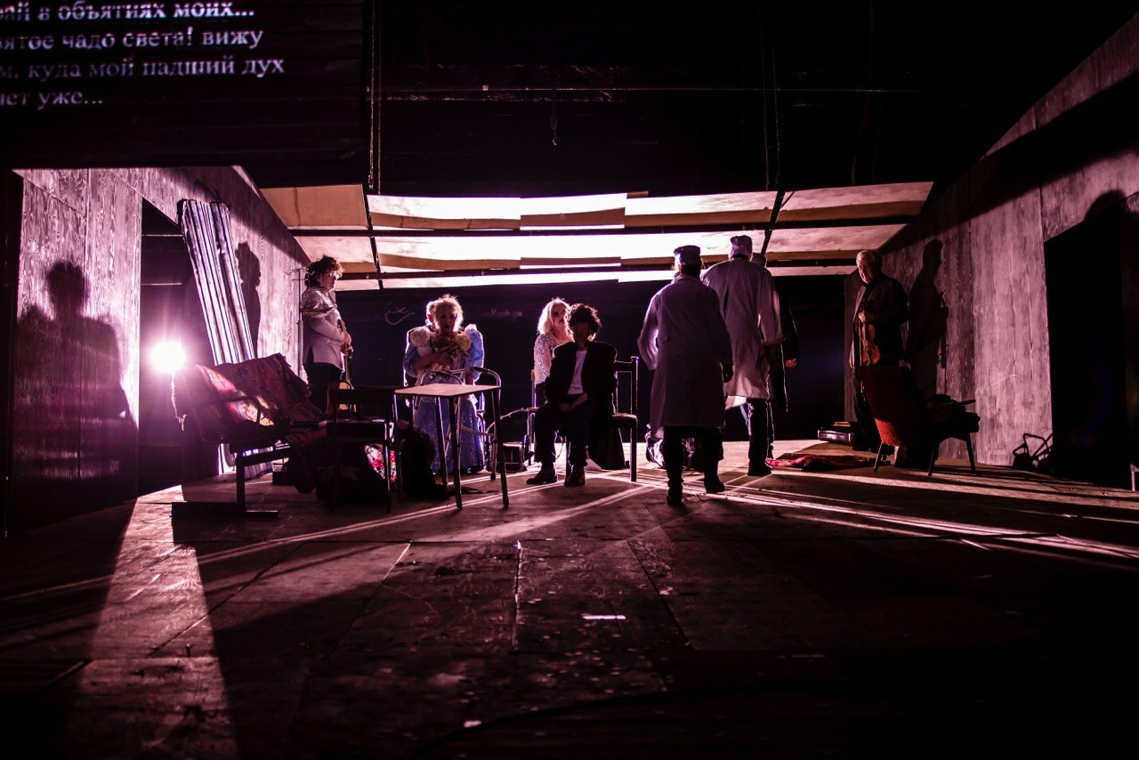 У каждого своя гармония – в самой хрупкой сцене «Трагедий» Моцарт создает её пластическую иллюстрацию из подвешенных в воздухе металлических конструкций. И завершающий спектакль «Пир во время чумы» (тот, что перенесен в убогое и щемящее пространство дома ветеранов сцены, тот, где играют старожилы театра им. Гоголя Майя Ивашкевич, Вячеслав Гилинов, Ольга Науменко, тот, где звучат романс Александра Малинина, серенада Гленна Миллера и кальмановская ария Марицы) дает слово аккордеонистке Галине Якушиной и скрипачу Михаилу Карапетяну – для своих, маленьких непридуманных историй.