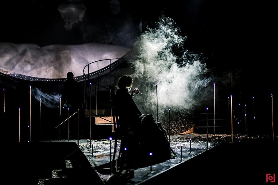 Так сложились обстоятельства, что я почти весь день премьеры провел за кулисами, облазил все уголки «Гоголь-центра», узнал рабочие детали выпуска спектаклей и более-менее рассмотрел, как всё устроено с технической стороны, – и при всём этом знании никакого другого определения, кроме «мистический», к опыту просмотра «Ахаматовой» применить не получается. Чудеса, в общем, действительно случаются. И в описании не нуждаются. Но если настаиваете, вот – что могу.