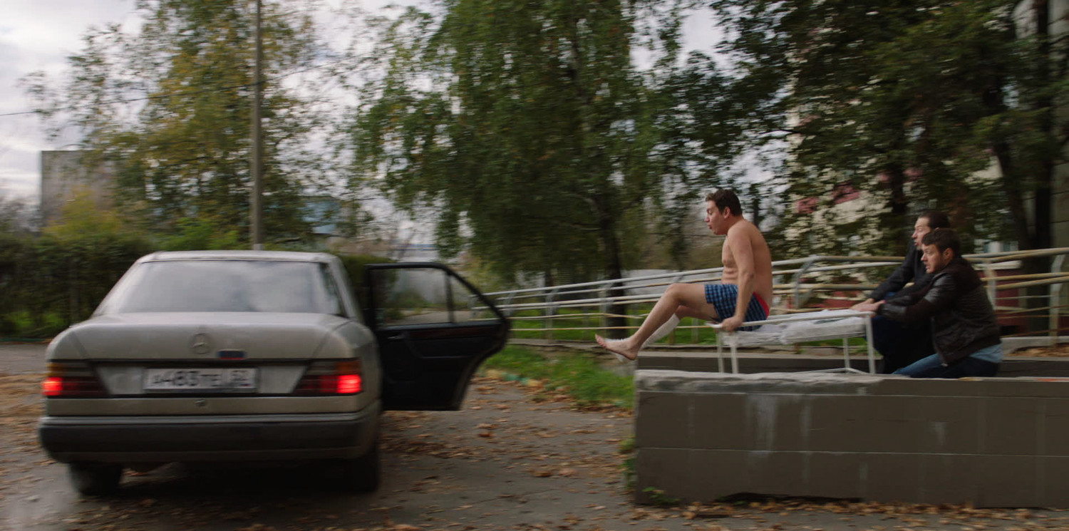 У киноманов он проходит как русский Джадд Апатоу; я бы не стал так обобщать (и усложнять себе жизнь – иначе придется объяснять тем, которые не киноманы, кто такой Апатоу), хотя сходство есть: в органичном соединении жанровой модели, щедрой на гэги, дикие драматургические навороты и всяческий гротеск, с реальностью. Почти парадокс: условно высоколобое наше кино с реальностью совсем раздружило (замечал это пару дней назад в рецензии на театрального «Иванова»), а в чисто, казалось бы, развлекательном опусе она – в каждом кадре; подлинная, современная (и вечно патриархальная) Россия. Точные социальные типажи, достоверные отношения, узнаваемые детали. На подходе к бару, где назначена встреча с женой, Митя встретит и затюканного перца с детской коляской (один кадр – а в нем вся возможная будущая жизнь), и поддатого охранника в дверях магазина «Хозяюшка»: вроде бы, мелочи, но в них вся соль. Каримов – режиссер раскованный: