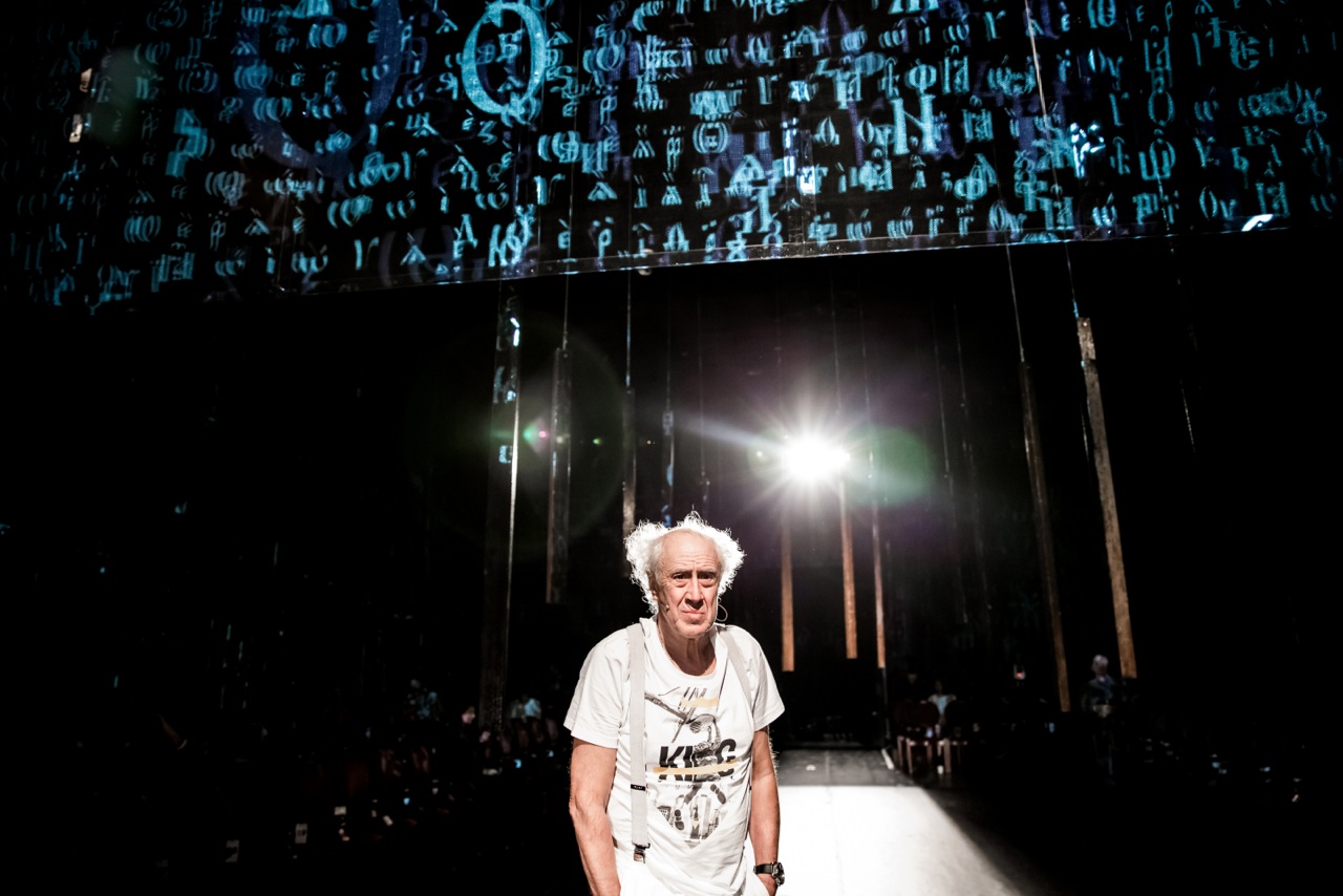 Для «Русской матрицы» большую сцену Ленсовета (где так ладно смотрелись и интеллигентные мюзиклы Владислава Пази, и многочасовые галлюцинации Юрия Бутусова) радикально переустроили: граница с залом размылась, партер стал перетекать в зрительские ряды, выставленные по периметру сцены, помост-подиум объединил игровое пространство и зал.