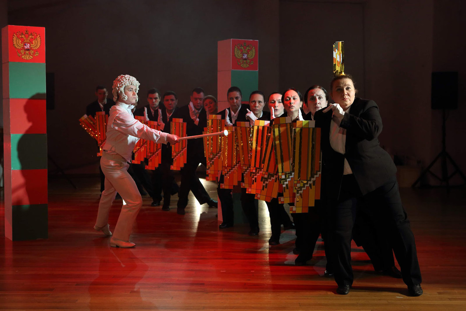 Красив и спектакль с неочевидным посылом; больше учебная работа, чем цементированное высказывание; задиристый мускулистый эскиз. Финальное превращение Ясмина Омерович в вампиршу – роскошный и иррациональный жест, которому при желании можно найти обоснование – но можно и не найти. Однако в полифоническом театральном тексте есть одна крутая находка – рифма между Маяковским и панк-роком (в программке Учебного театра из названия группы Sex Pistols целомудренно исчезло слово Sex).