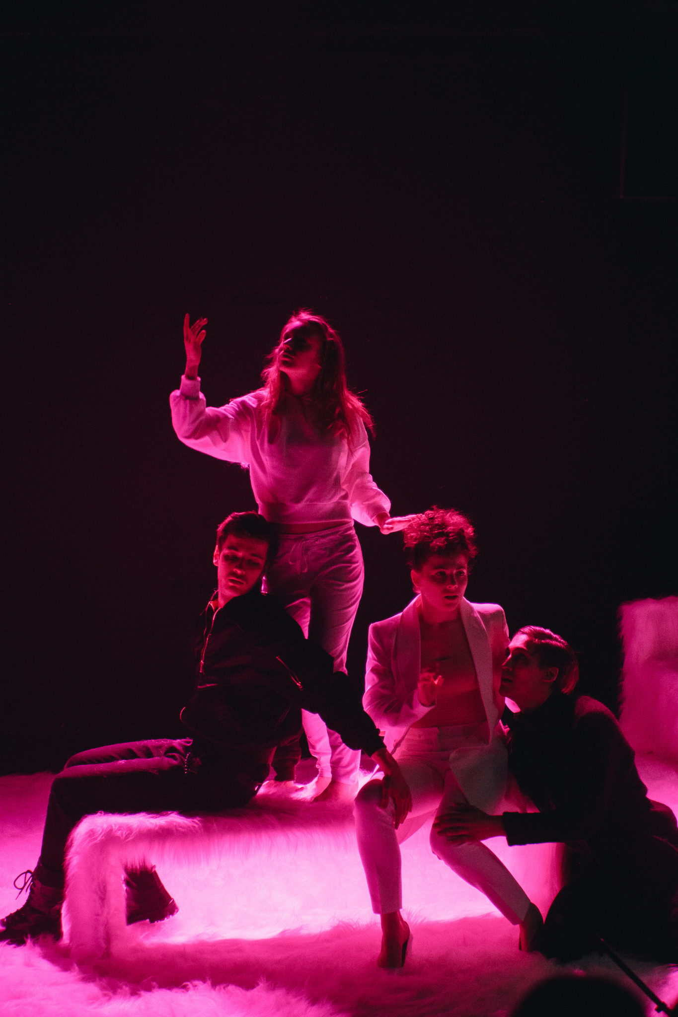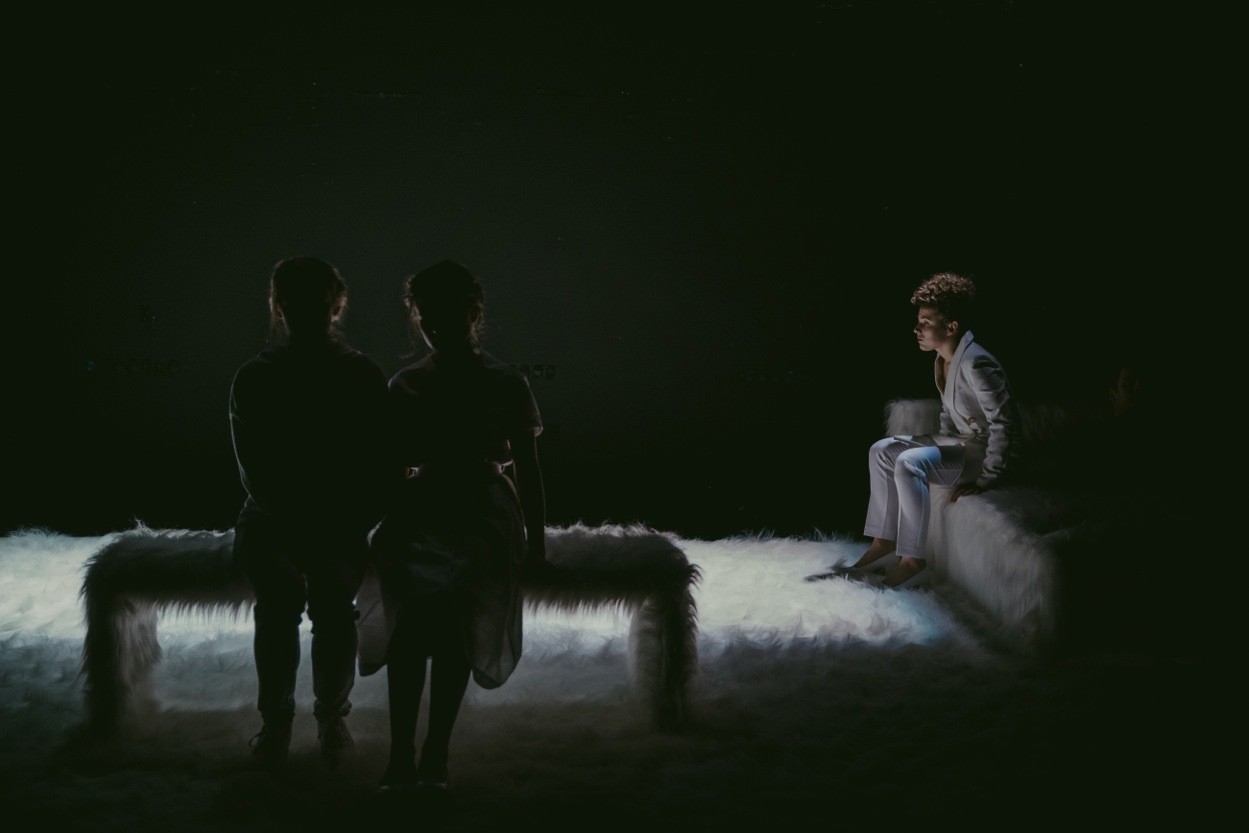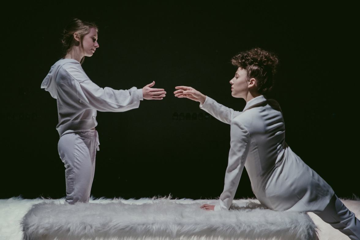 Три девушки из «оранжерейного» мира современного искусства. Плавность во всём – от движений до переливов света. Вкрадчивая электронная музыка. Никаких войн – кроме впроброс упомянутых гадостей в соцсетях. На Новой сцене МХТ царит тишь – но не благодать.