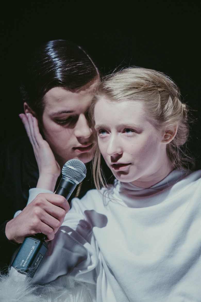 Никита Ковтунов – как бы отец Оли, старик-музыкант (и потому у Ковтунова есть право играть на синтезаторе), Кирилл Одоевский – как бы уличные маргиналы, героинщик и парень (или мужчина старше сорока – не разобрать в густом летнем мареве) под бутиратом. «Как бы» – потому что парни лишь отчасти играют определённых персонажей; они берут на себя авторские ремарки, заменяя его и напоминая об ущербности странного, сходного с липким неотвязным сном мира Алины-Оли-Марины, где нет мужчин там, где они должны быть. Где войны исторгнуты из разговоров – как пушечное мясо, оставленное только в названии.