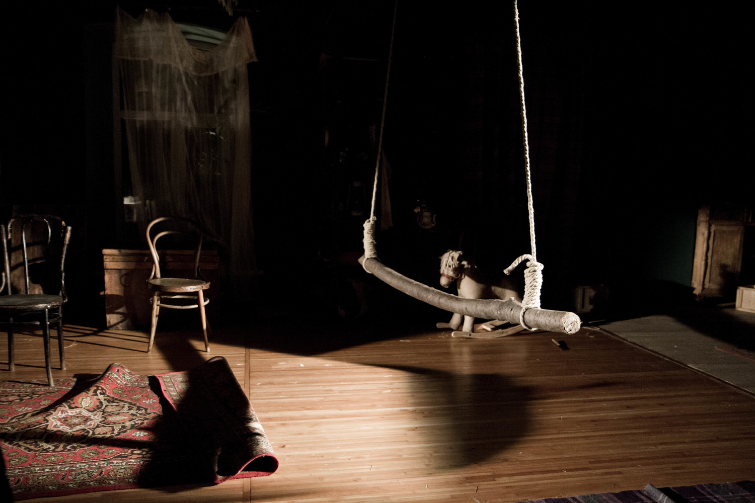 За работу художника в драматическом театре отмечена Ксения Перетрухина, гениальный, без всякого преувеличения, автор, создавший на Малой сцене Театра Наций уникальную декорацию «Дыхания»: сначала для игры оставлена только узкая полоска между стеной дома, где обитают герои, и первым рядом зрительских кресел; по ходу же действия пространство медленно, микроскопическими движениями, почти незаметно для глаза увеличивается – и это почти психотропный эффект; лучшее, что есть в небесспорном спектакле Марата Гацалова.