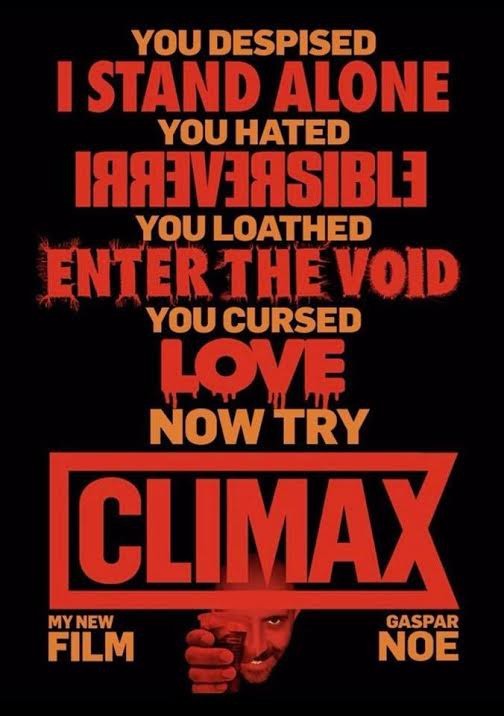 Сохраняя, конечно, фирменные приемы – контрастный концертный свет, безумные сальто мортале камеры, титры, вторгающиеся в действие – и удивляя так, что теряешь дар речи («прощай, речь», как говорил в предыдущем фильме ЖЛГ). Новый фильм Ноэ «Climax» – главная премьера параллельной программы «Двухнедельник режиссеров», отмечающей в этом году 50-летие. Название совпало с мощнейшим танцевальным спектаклем израильтянки Ясмин Годдер (его показывали в Москве на фестивале NET) случайно, тем не менее, фильм Ноэ процентов на 80 состоит из танцев. «Climax» – тот случай, когда пересказ равнозначен преступлению; даже в каталоге о сюжете не ни слова – и ни кадра. Зато доступен постер – пример остроумия, извращённого нарциссизма и великой тайны.