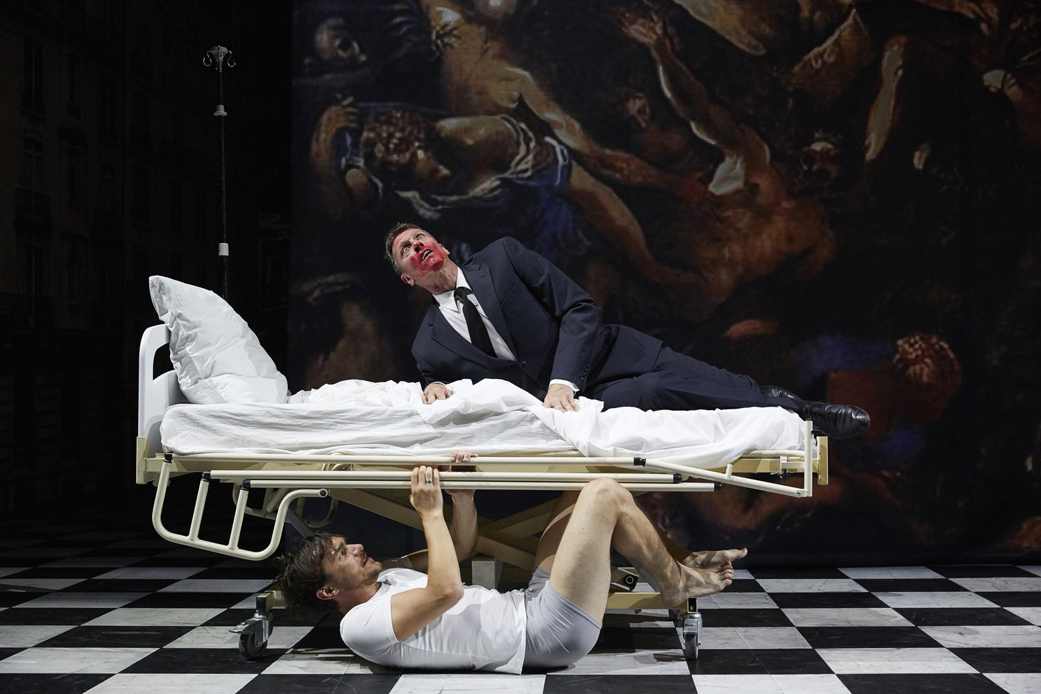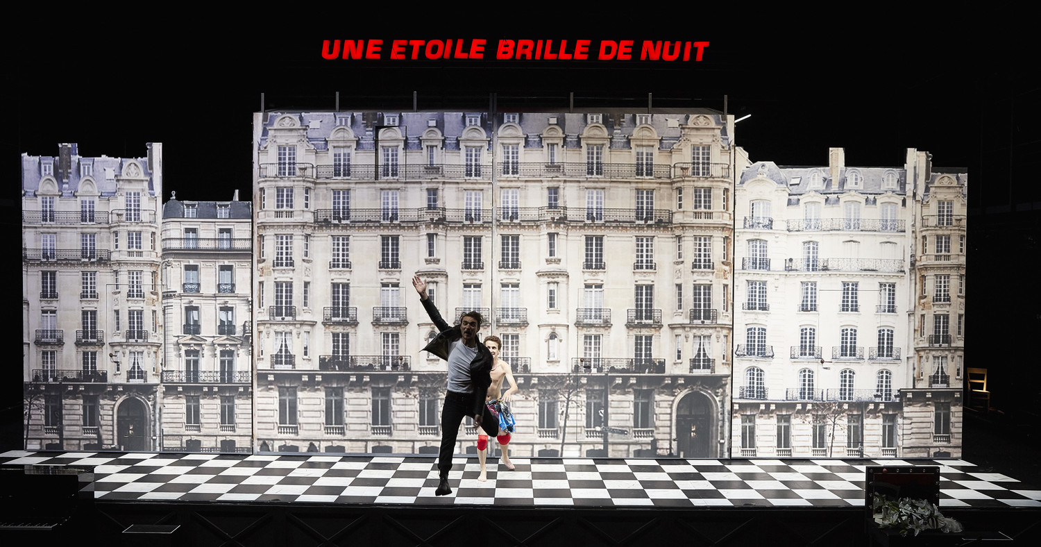 Его хронометраж диктует стилевую разношерстность – Пи держит внимание почти без сбоев. Легкость в смене декораций (в сценографии постоянного соавтора Пи Пьера-Андре Вайца мобильные блоки парижских домов выстраиваются в разнообразные интерьеры, иногда поворачиваясь на 180 градусов и открывая спрятанные за фасадом квартиры, занавесы-полотна превращают сцену в больничную палату, меняя регистр с фарсового на патетический, расчерченный на квадраты пол приобретает сходство с шахматной доской) сродни легкости в смене масок-ролей: 20 персонажей играют 10 актеров.