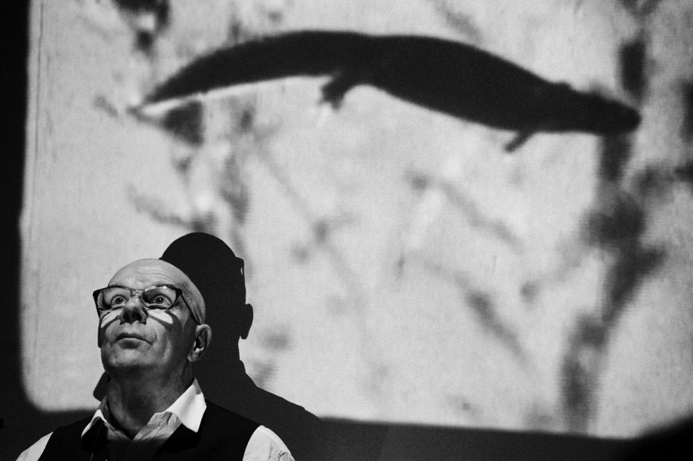 Сэмзё почтил память одного из основателей ДОМа, музыкального журналиста Николая Дмитриева, а затем исполнил два произведения: недавнее (»K« Engravings на основе текста Кафки «Послание императора») и одно из самых известных (Tractatus на основе «Логико-философского трактата» Виттгенштейна). После концерта мы задали Сэмзё вопросы о культурном климате Венгрии, политическом и эстетическом измерении его музыки, а также роли человеческого слова и голоса в его художественной практике.